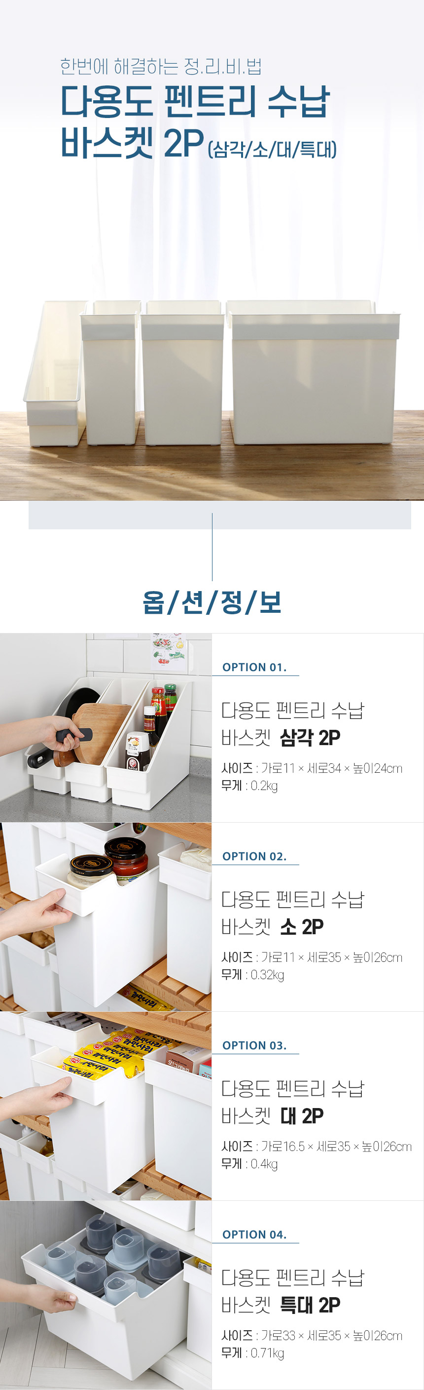 [특가~3/23AM10]홈앤하우스 다용도 펜트리 수납 바스켓 1+1 (삼각/소/대/특대)
