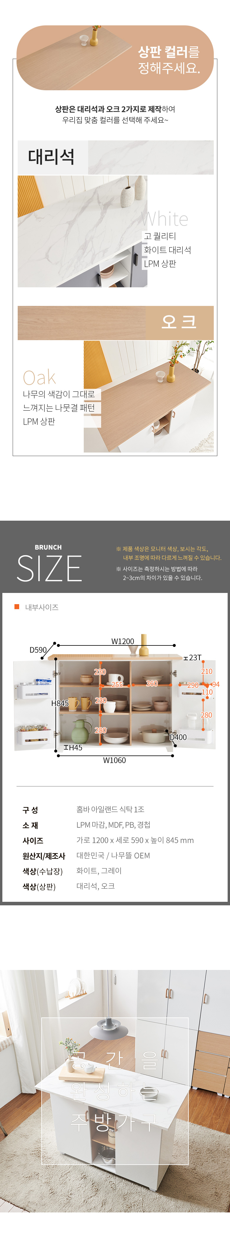 브런치 1200 냉장고 수납형 홈바 아일랜드 식탁 GNR066C