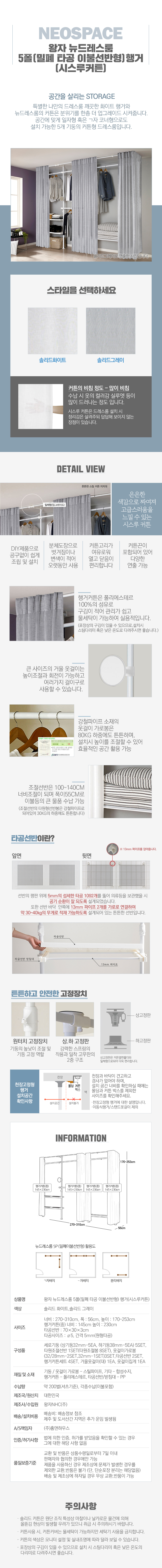 [왕자행거] 뉴드레스룸 5폴(밀폐 타공 이불선반형) 행거(시스루커튼)