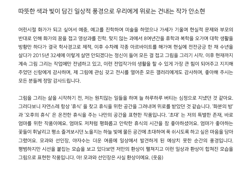 안온한 휴식을 그려내는 안소현 작가는 신진 작가이지만