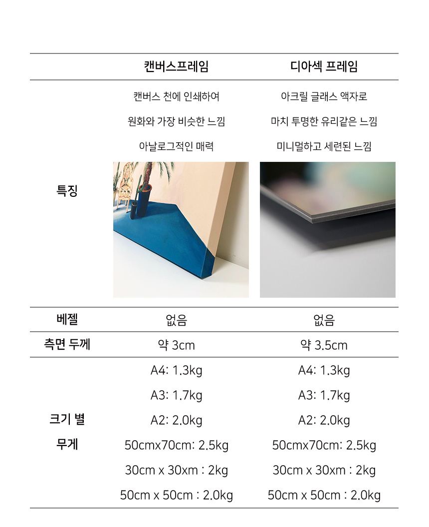 캔버스 액자와 디아섹 아크릴 액자로 제작되었다.