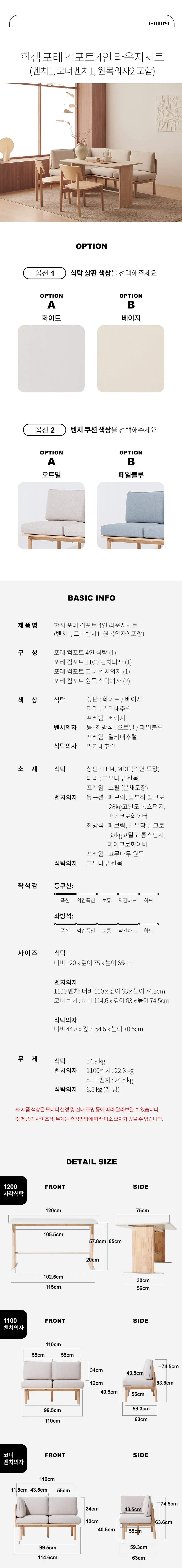 포레 컴포트 4인 라운지세트 (벤치1, 코너벤치1, 원목의자2 포함)