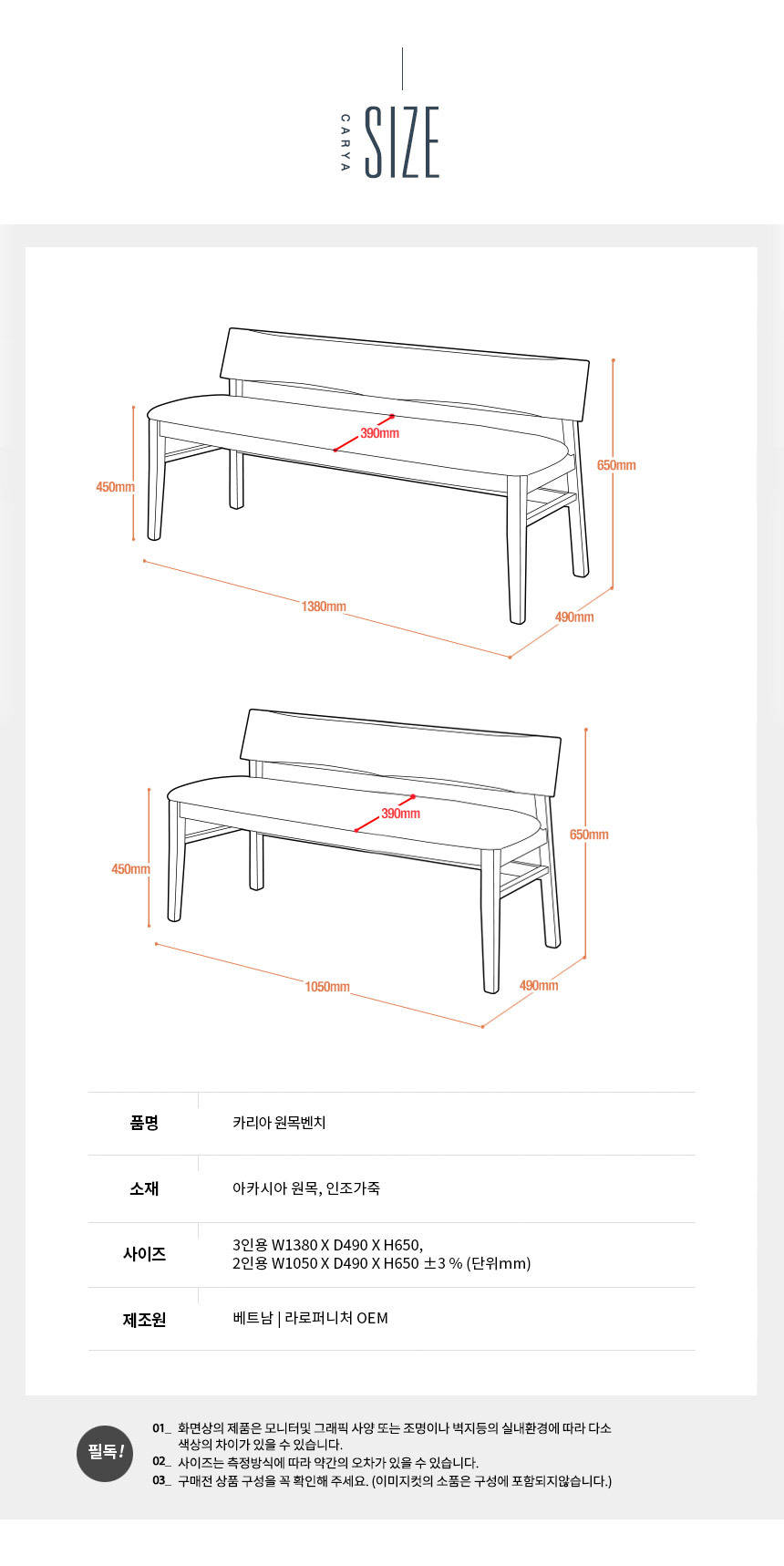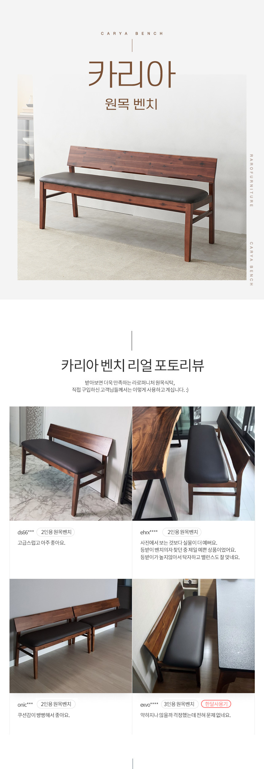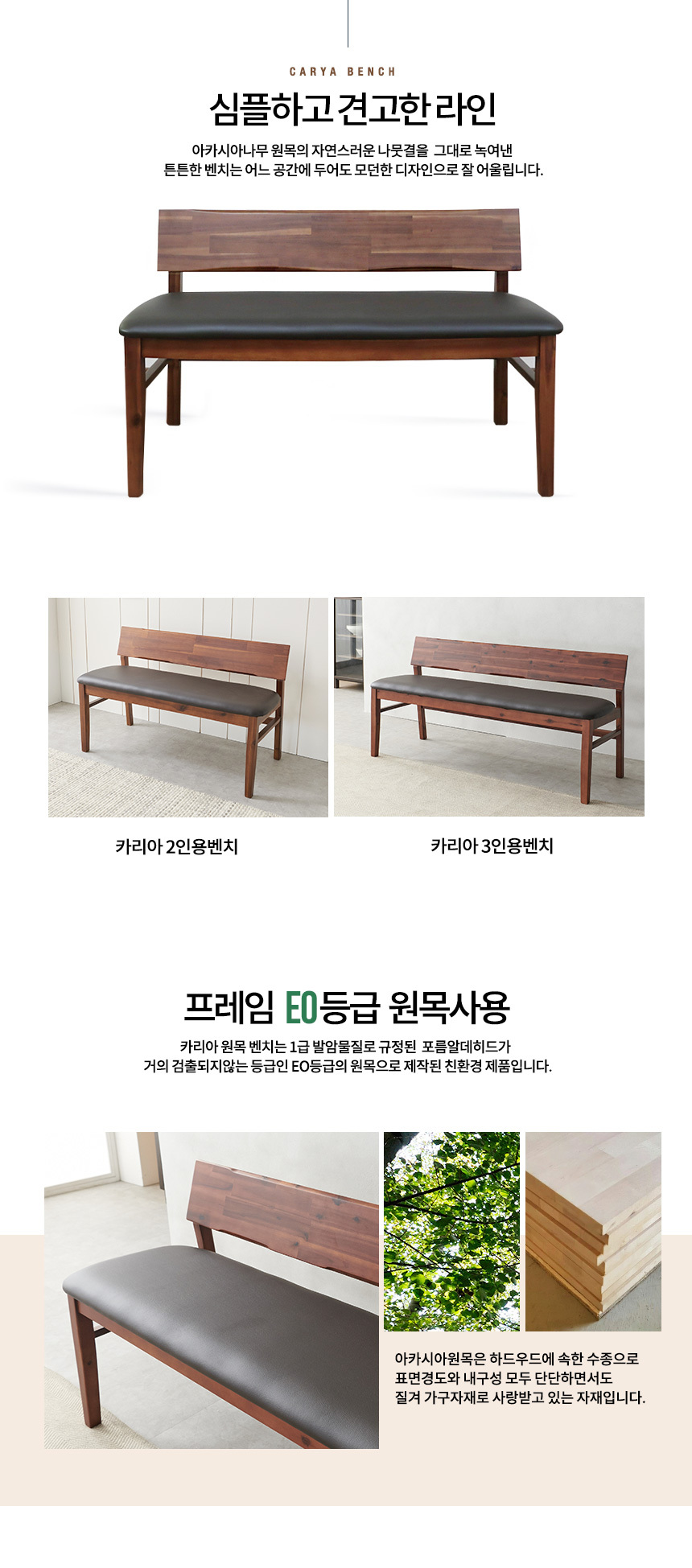 라로퍼니처 카리아 아카시아 원목 2인 3인 식탁 벤치 의자 2인용 3인용 밴치