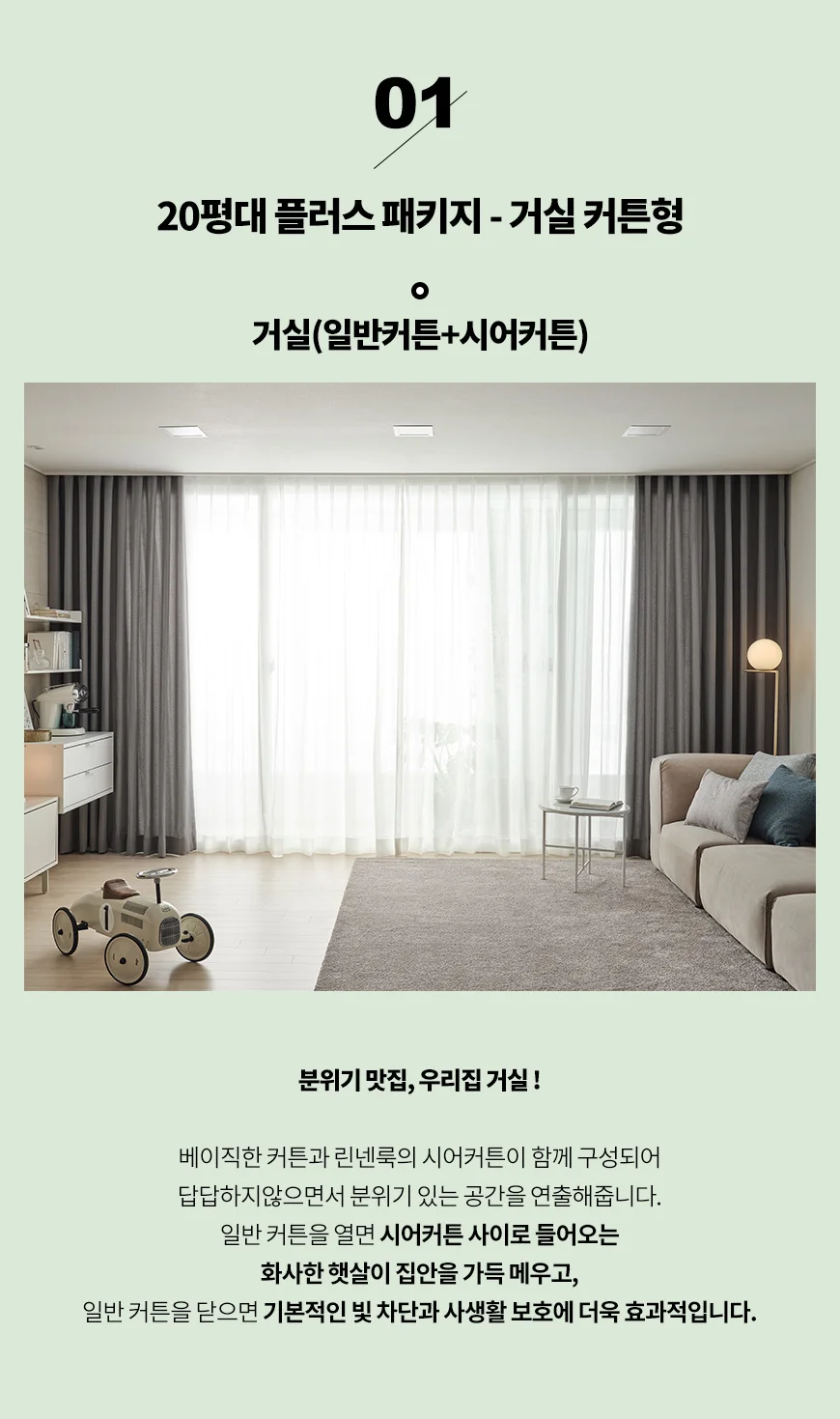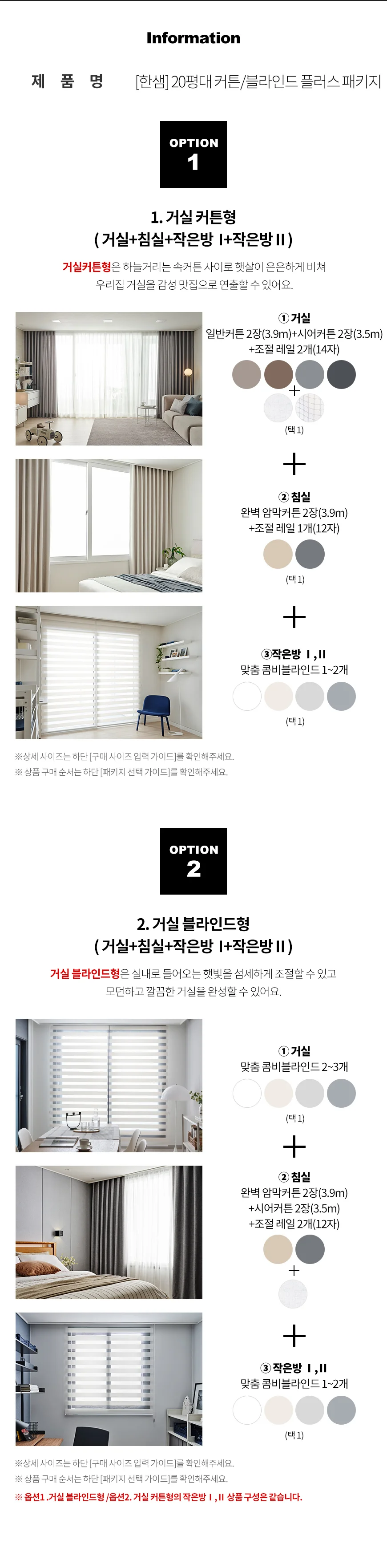블라인드/커튼 20평형대 플러스 패키지(거실+방3개)