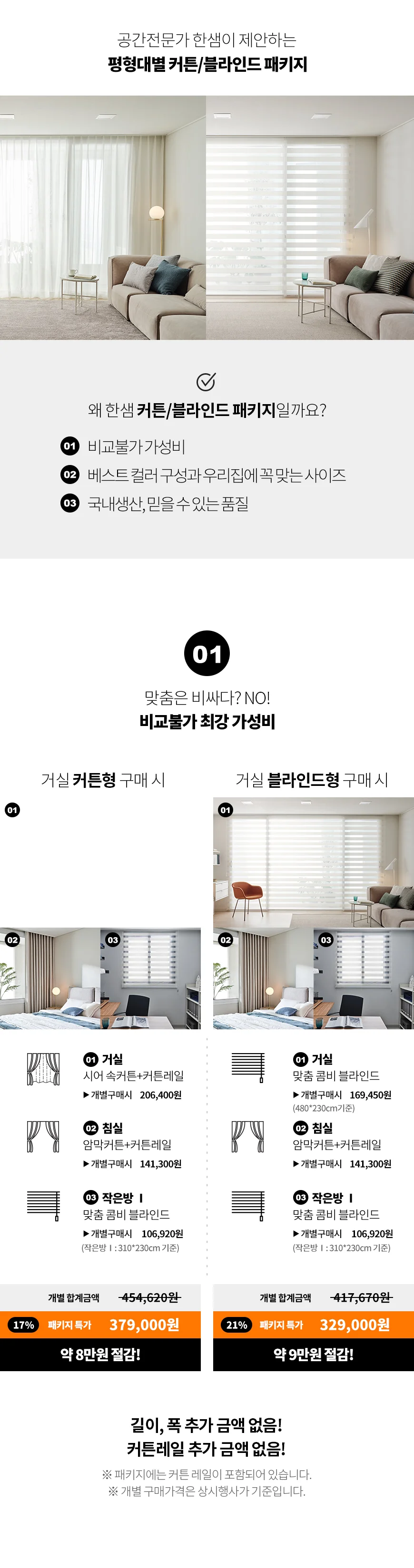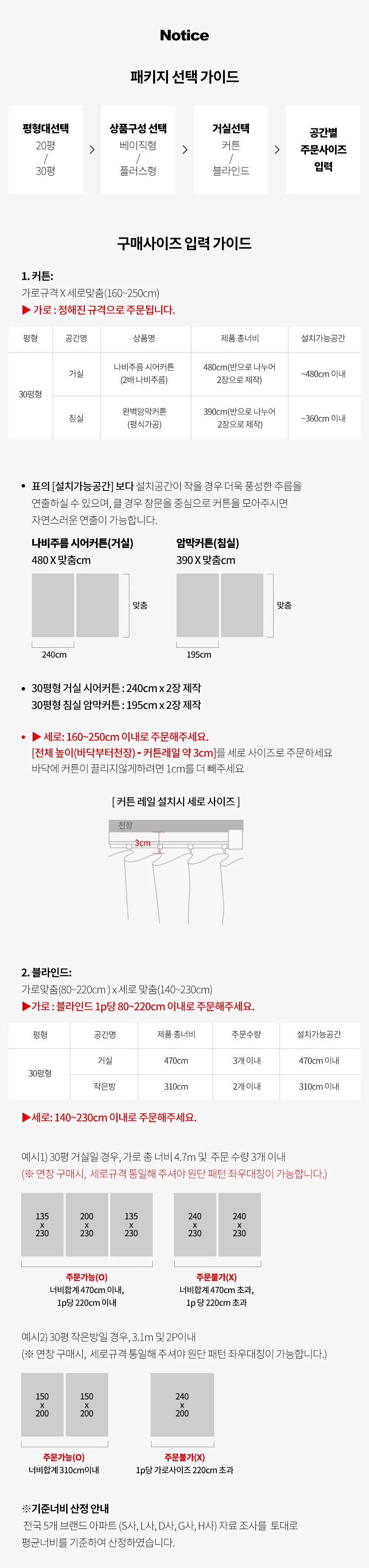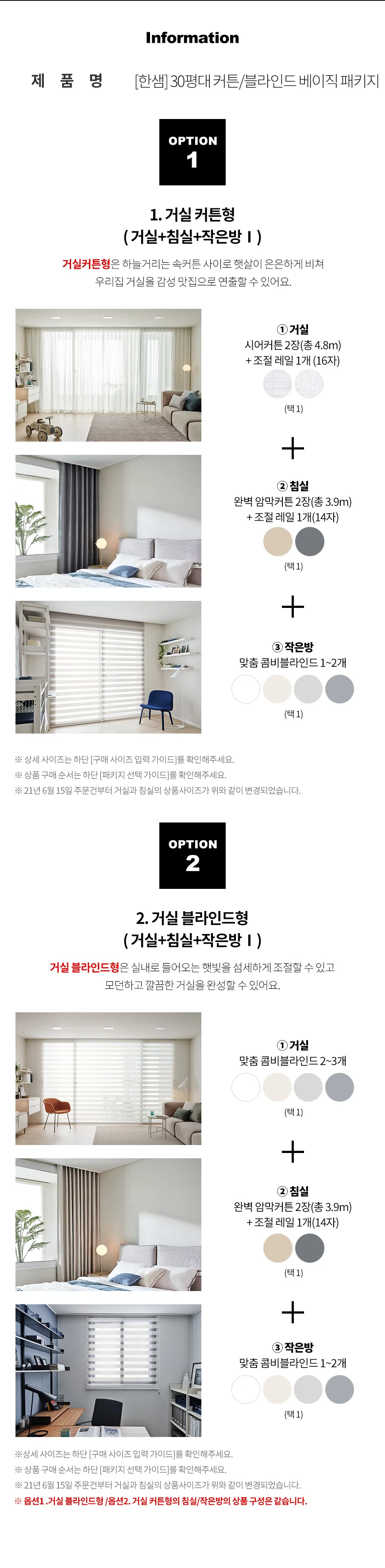 블라인드/커튼 30평형대 베이직 패키지(거실+방2개)