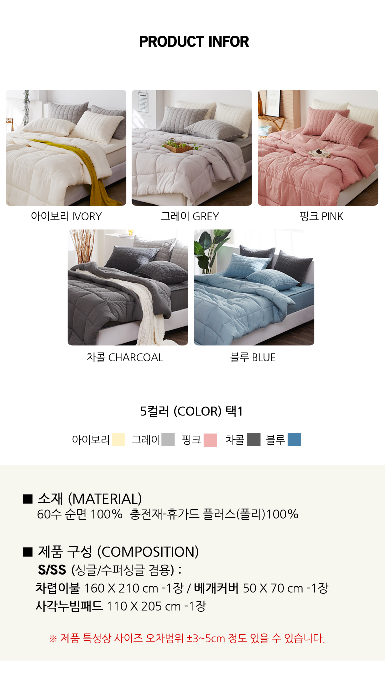 PMM 60수순면 피그먼트바이오워싱 차렵패드세트S 차콜