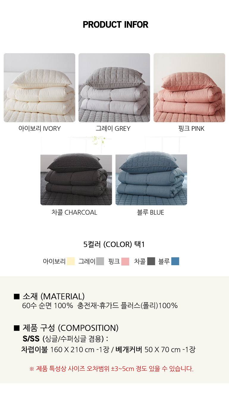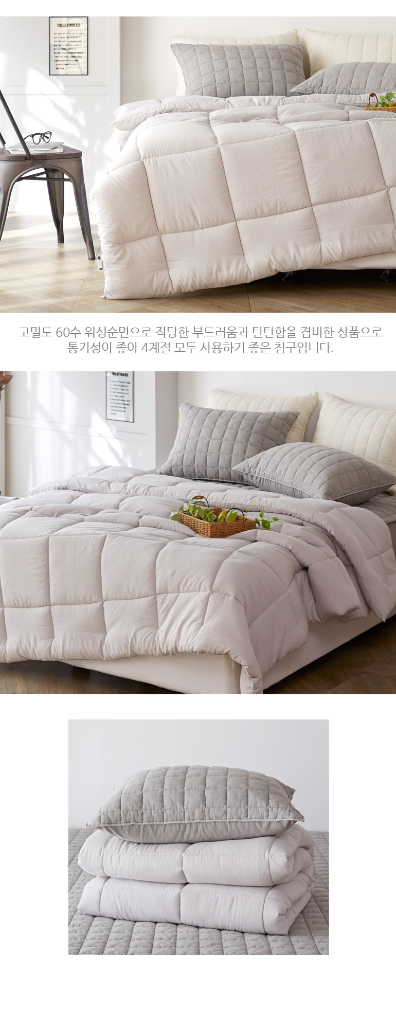 PMM 60수순면 피그먼트바이오워싱차렵베개세트S그레이