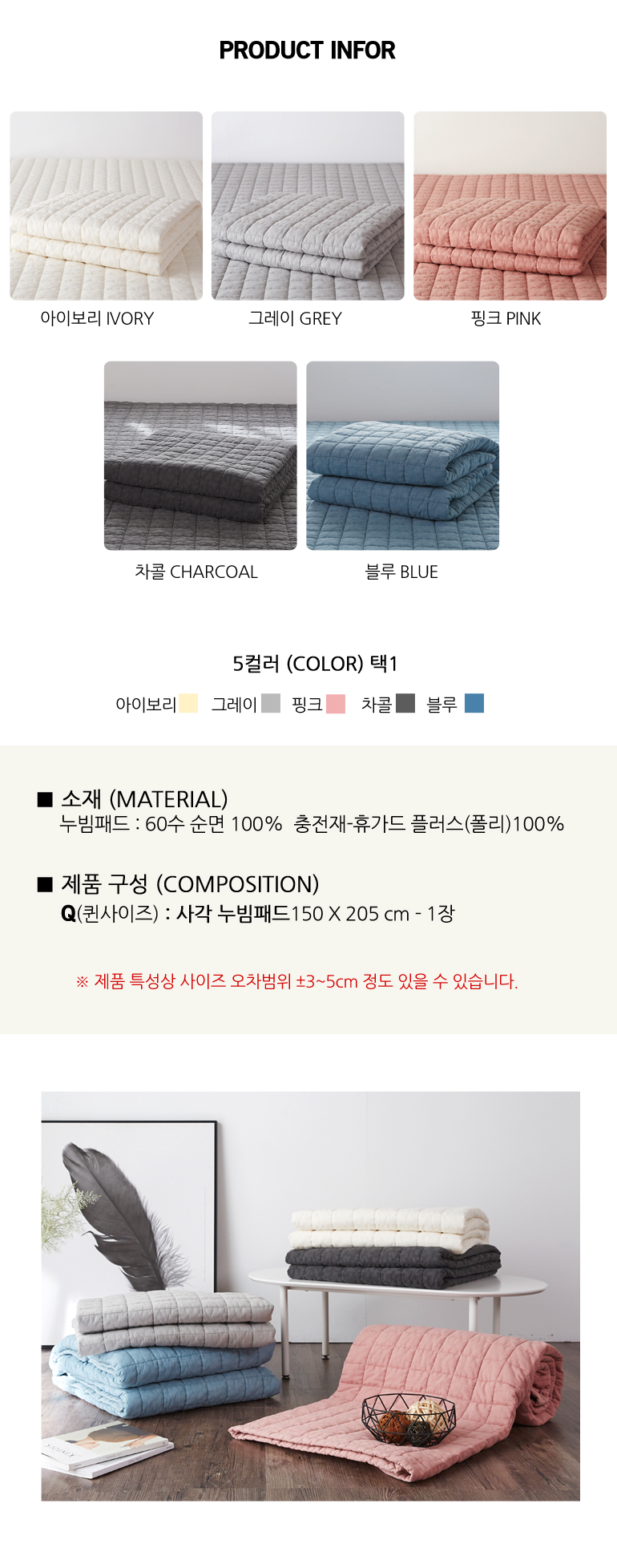 PMM 60수 순면 피그먼트 바이오워싱 양면패드Q 5컬러