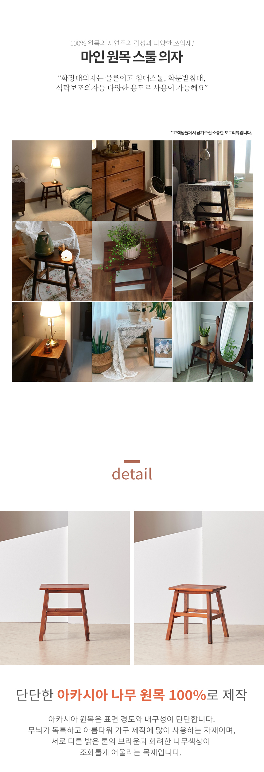 라로퍼니처 원목 사각 화장대 스툴 의자 화분 받침