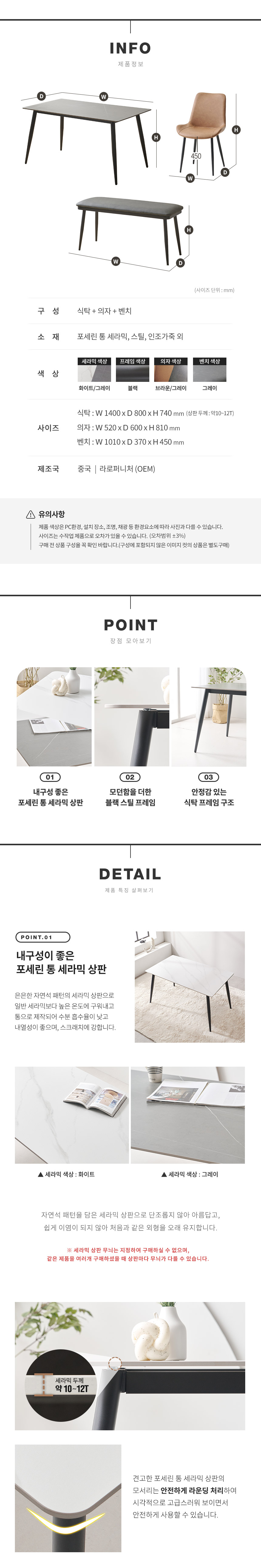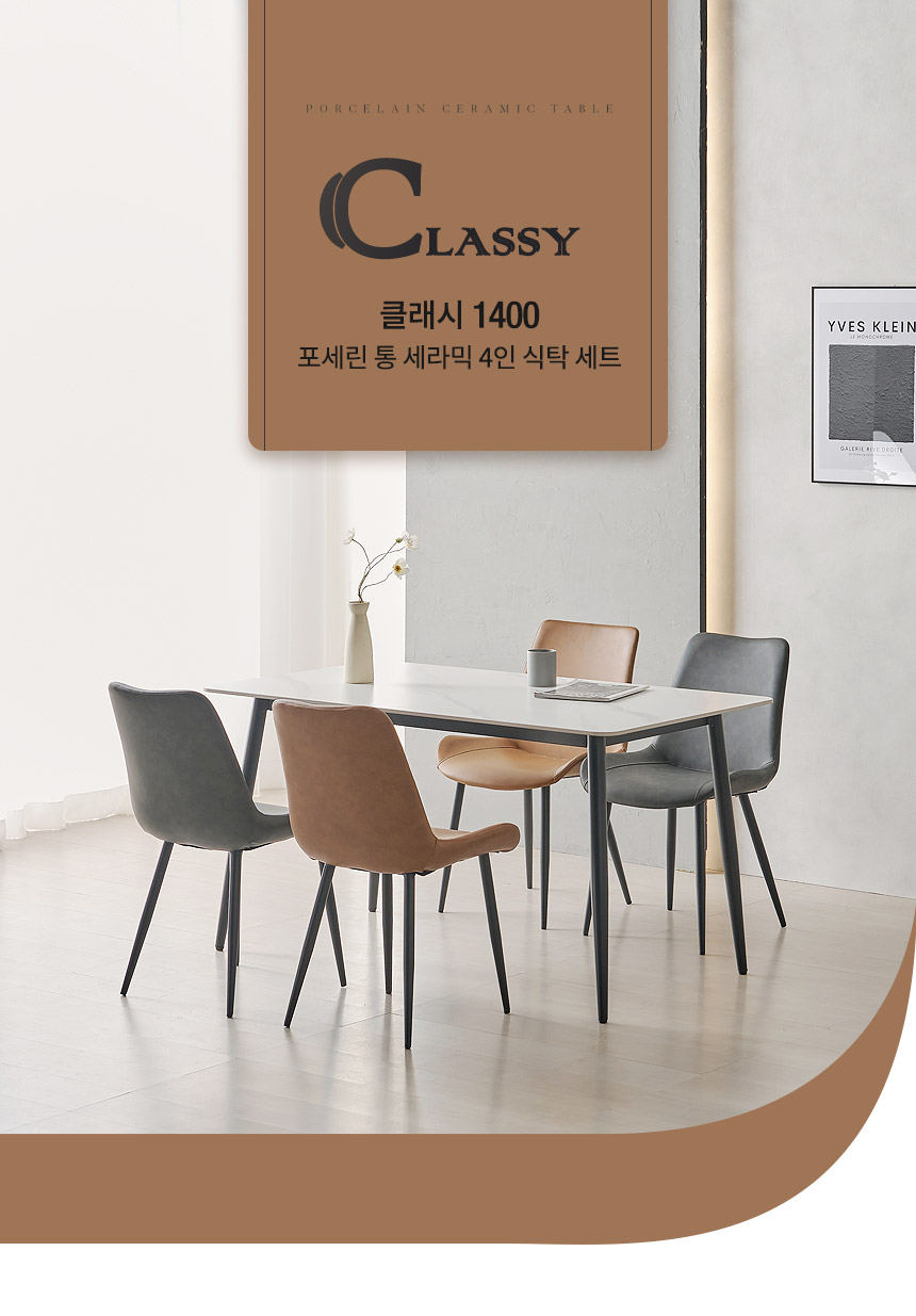 라로퍼니처 클래시 1400 포세린 그레이 통 세라믹 4인 식탁 세트 테이블