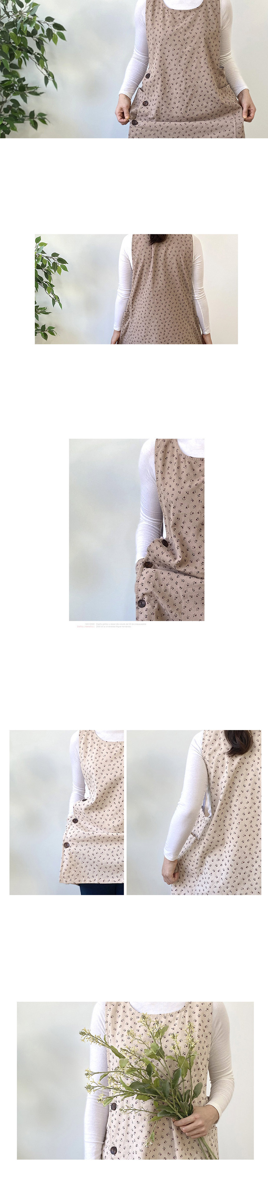 작은 꽃패턴으로 과하지 않게 입기 편한 앞치마입니다.