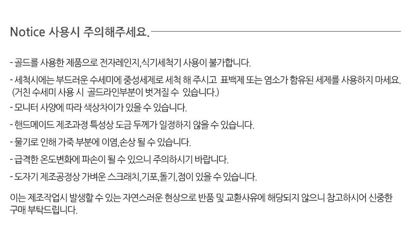 * 재질 :손잡이-인조가죽, 몸체-도자기