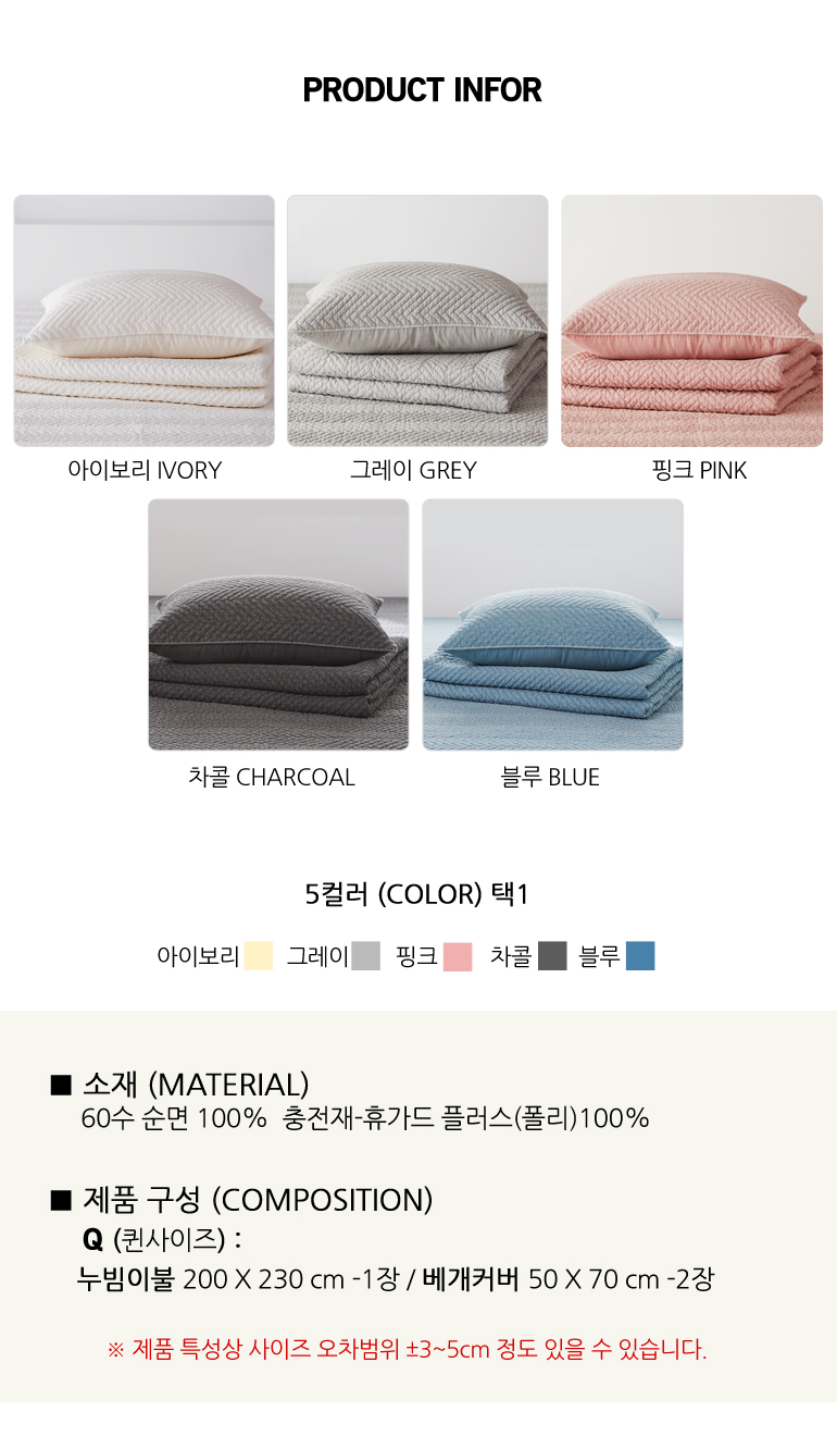 PZZ 60수순면 피그먼트바이오워싱 누빔베개세트Q5컬러