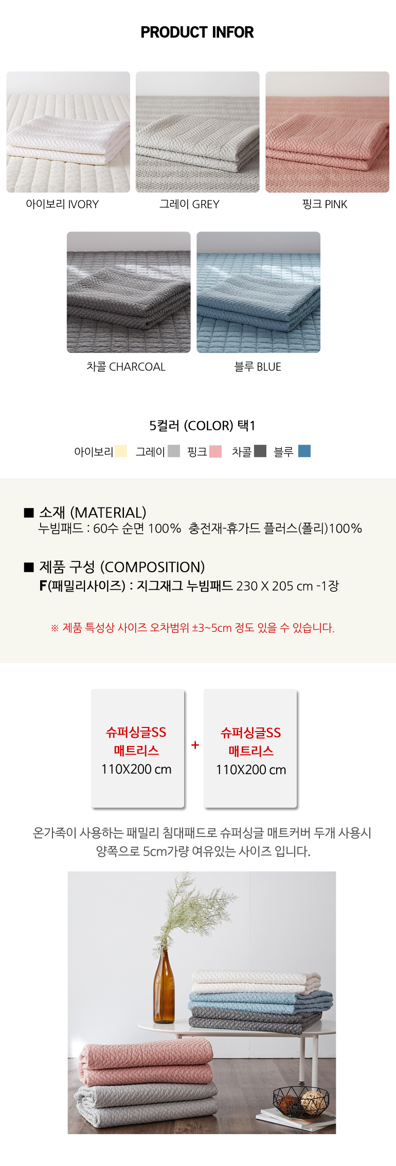PZZ 60수순면 피그먼트워싱 패밀리패드230X205 핑크