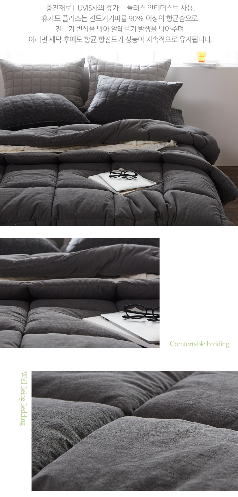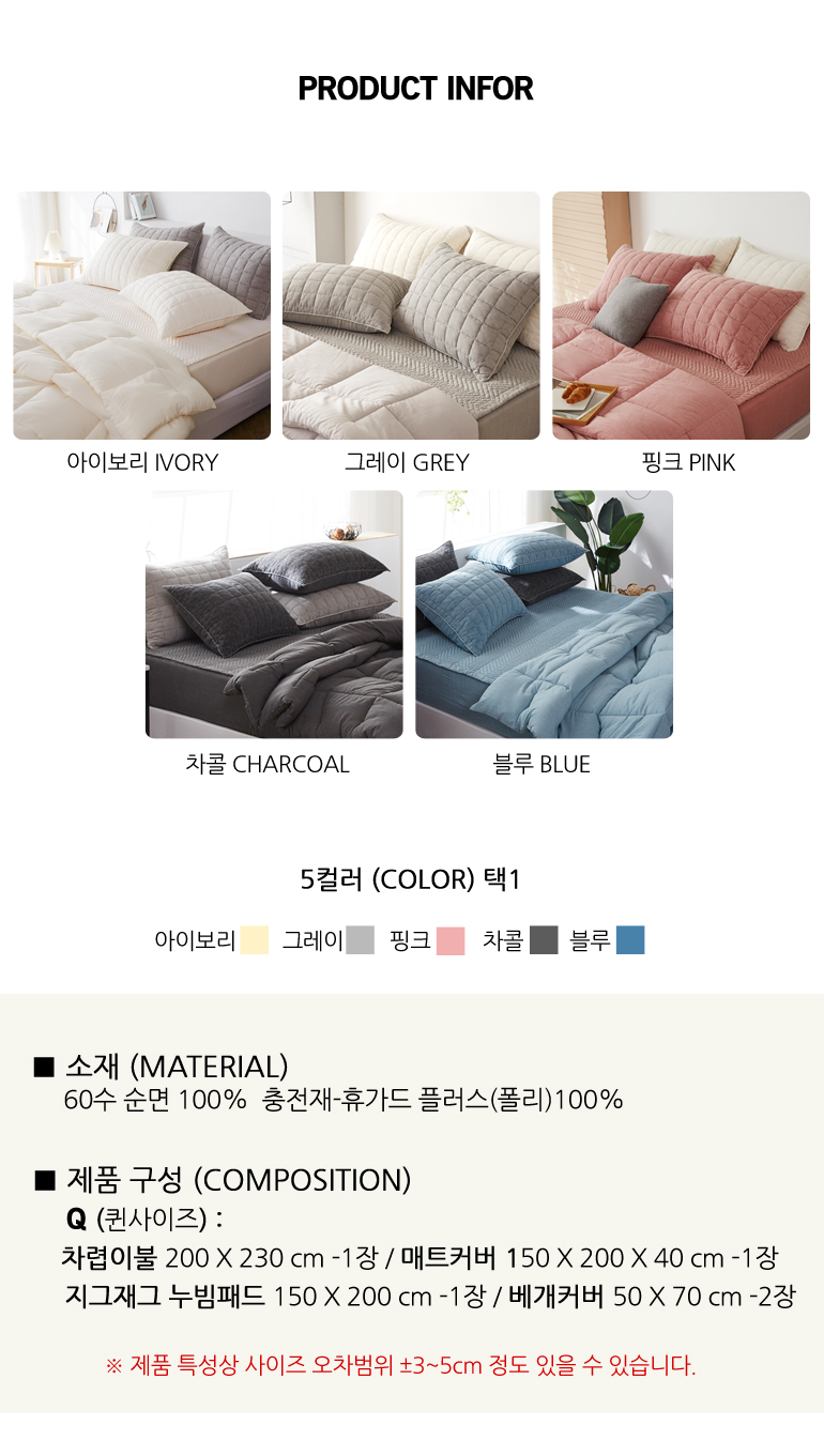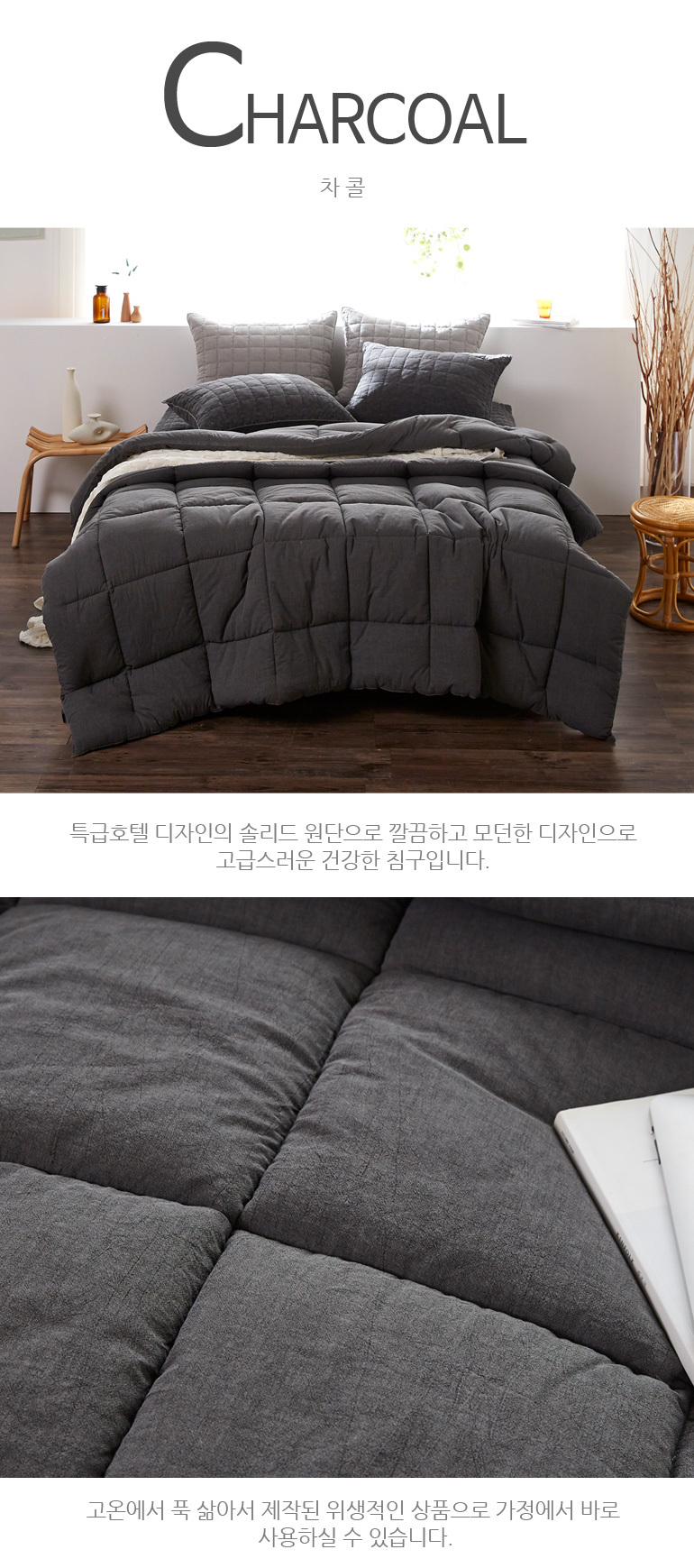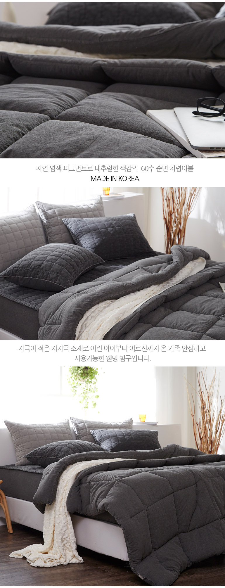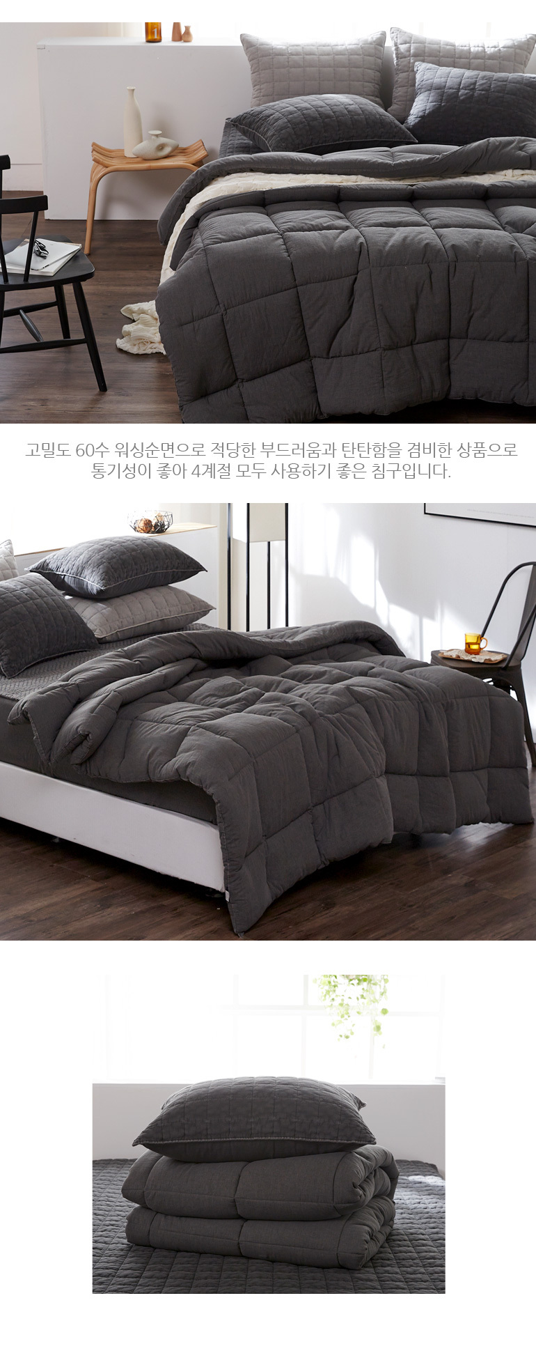 PMZ 60수순면 피그먼트 바이오워싱 차렵풀세트Q 차콜