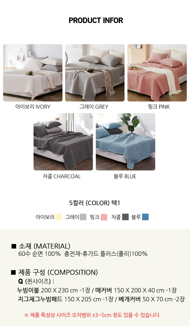 PZZ 60수순면 피그먼트 바이오워싱누빔풀세트Q 차콜