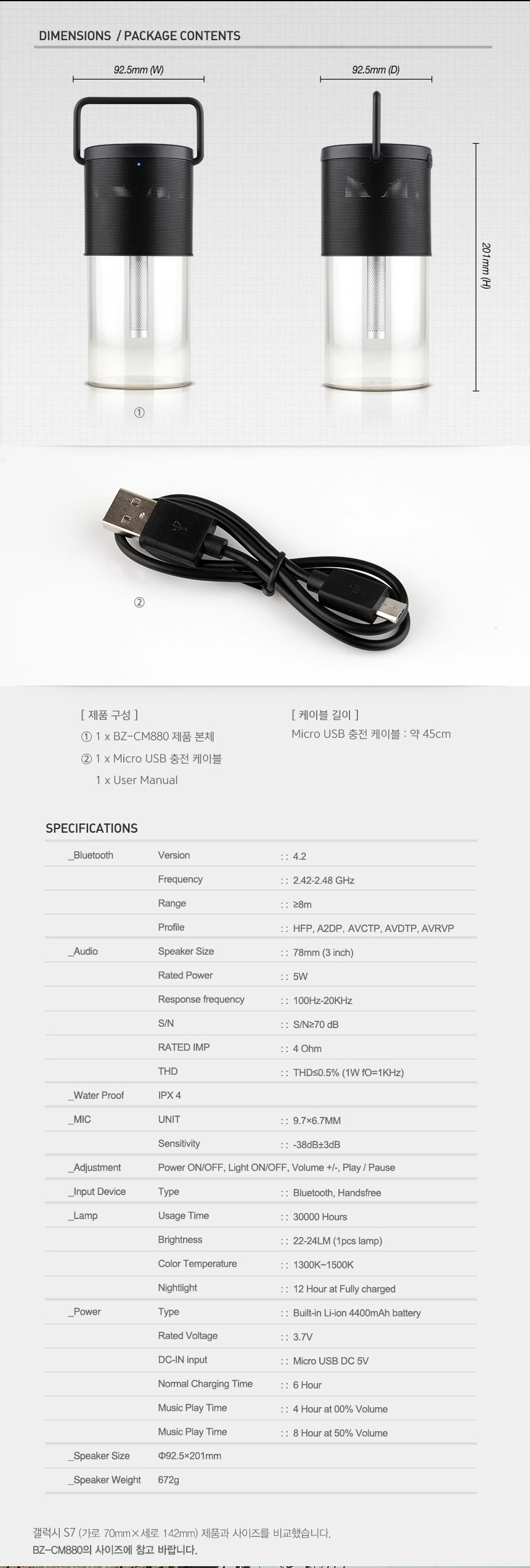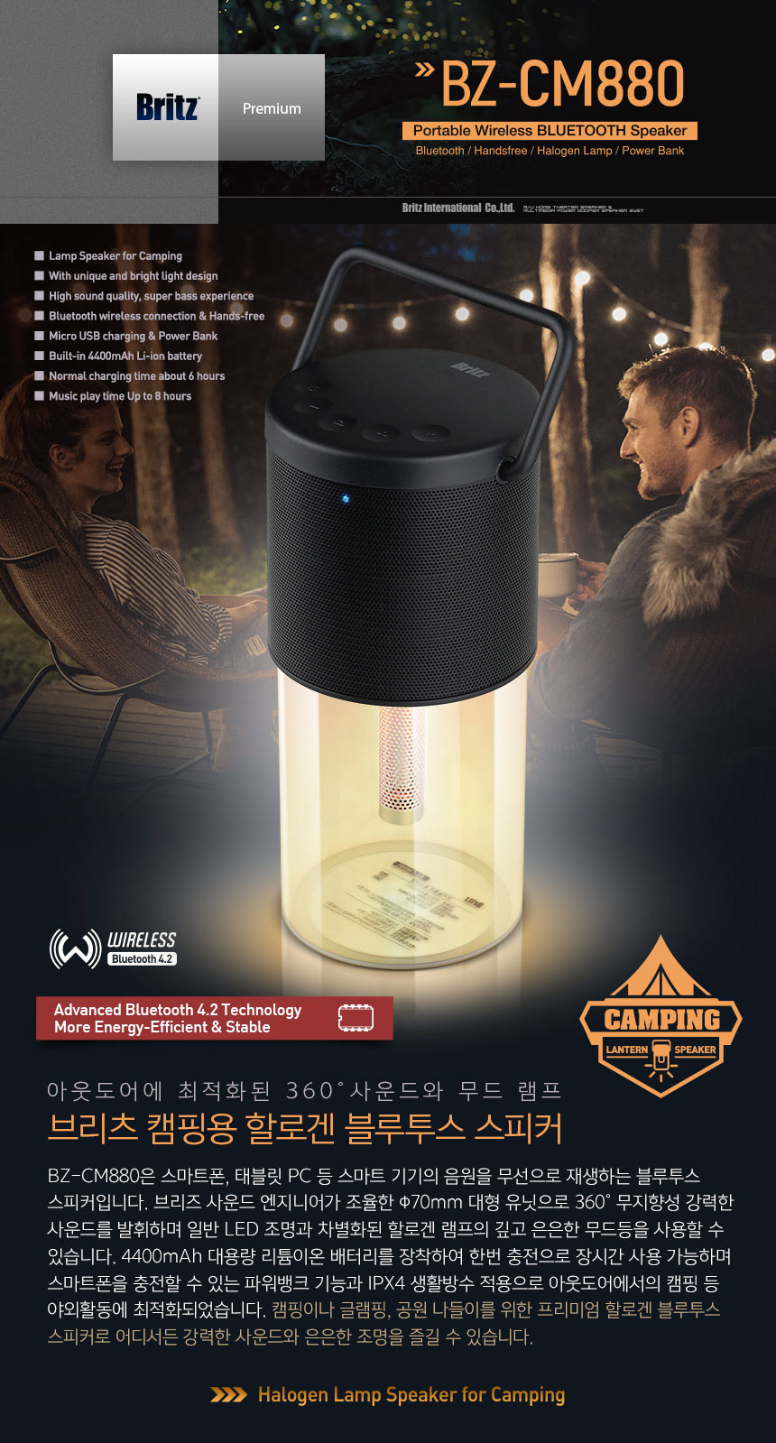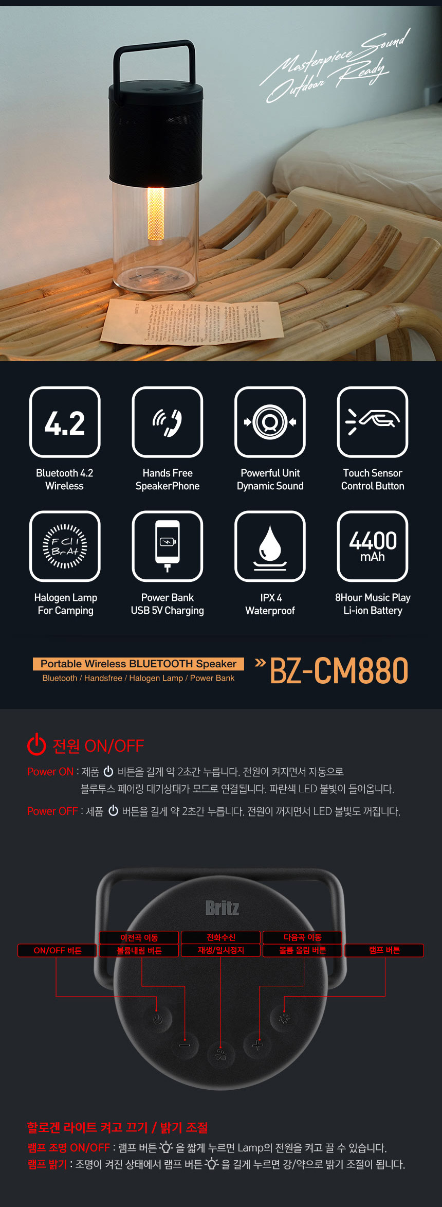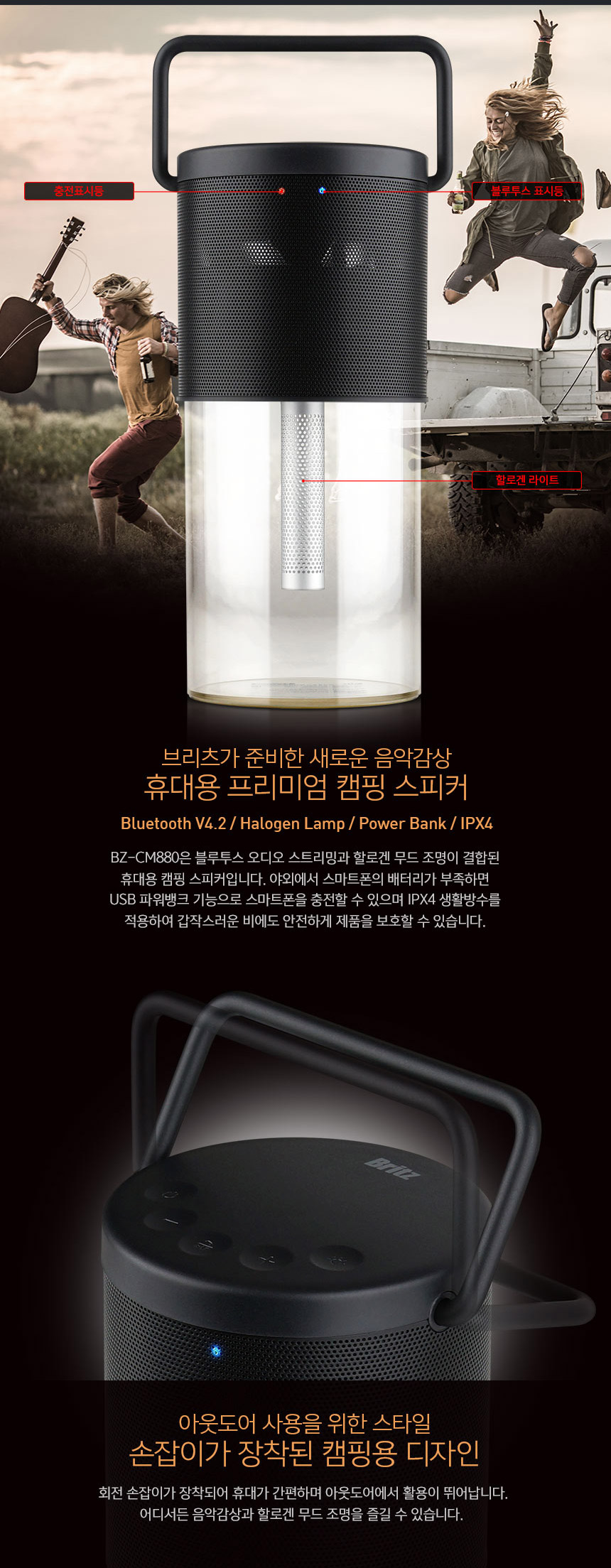 브리츠 캠핑용 할로겐 블루투스 스피커 BZ-CM880