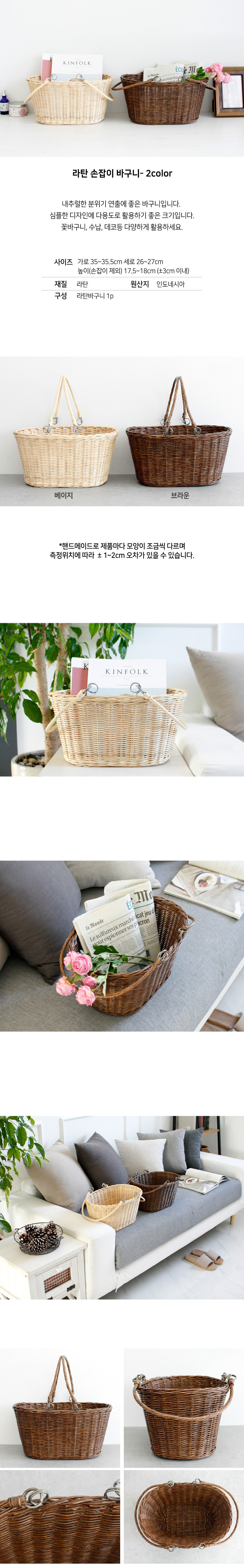 라탄 손잡이 바구니 1P (2colors)
