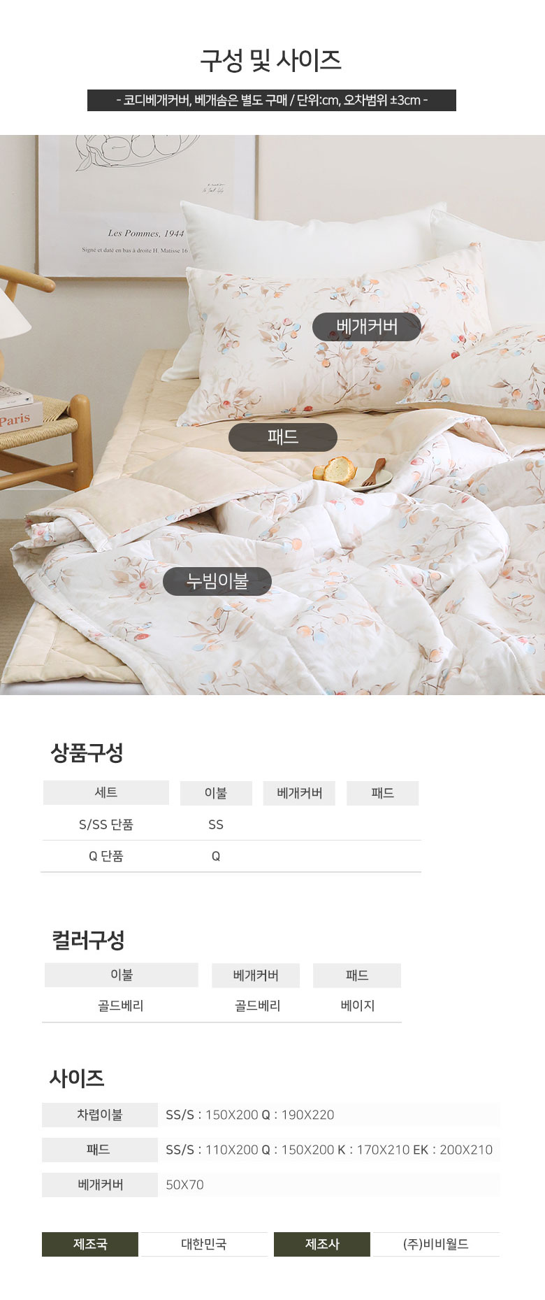 라벤더 프리미엄 모달코튼 플라워 여름 간절기 차렵이불 7종 (SS/Q/K/EK)