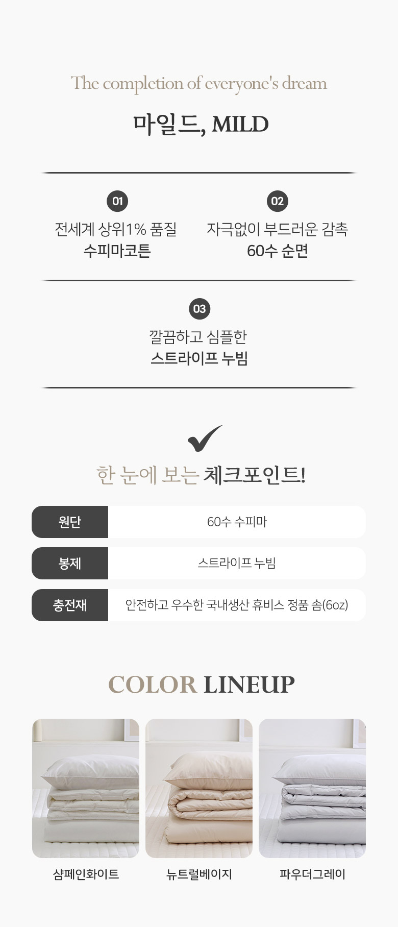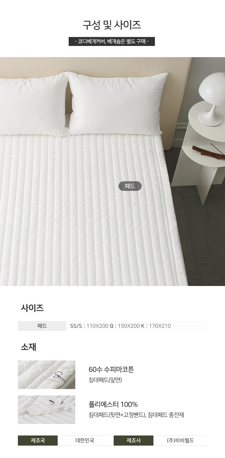 마일드 수피마코튼 60수 순면 침대패드 SS/Q/K