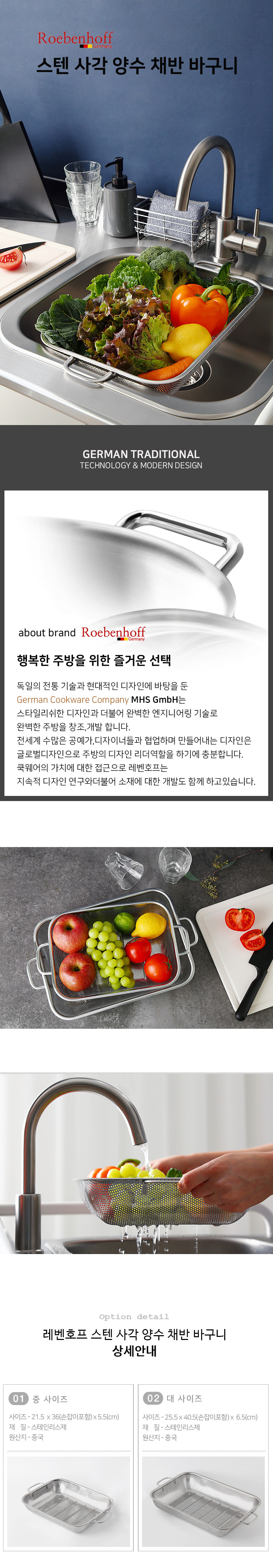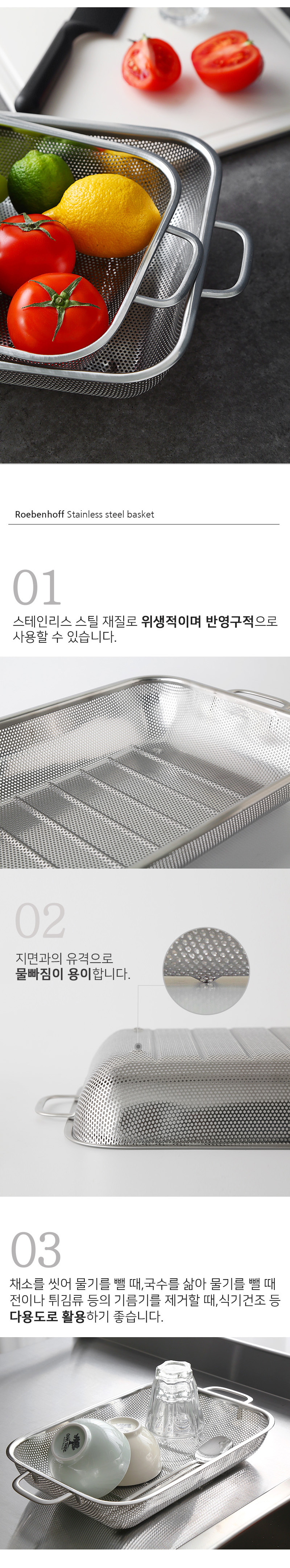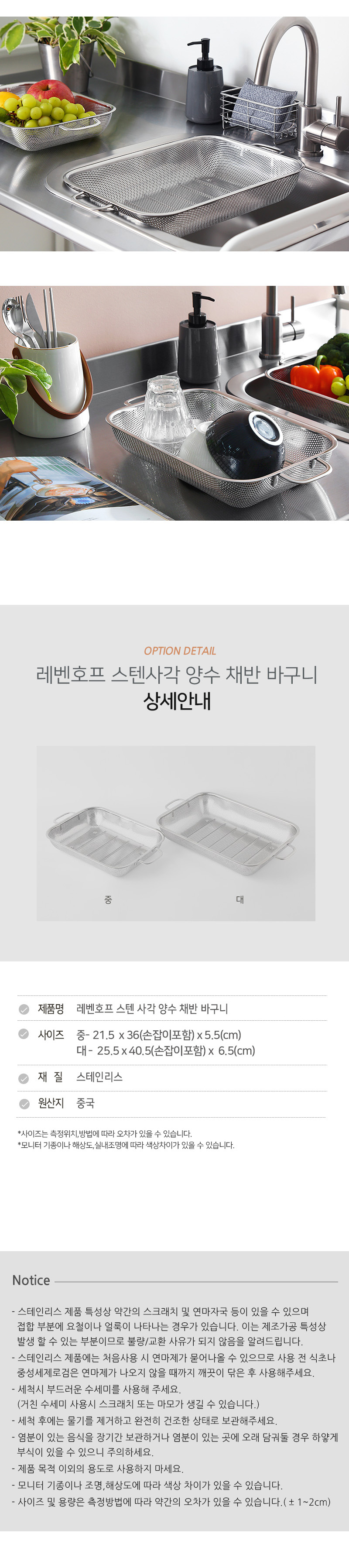 *?레벤호프 스텐 사각 양수 채반 바구니(2size)?