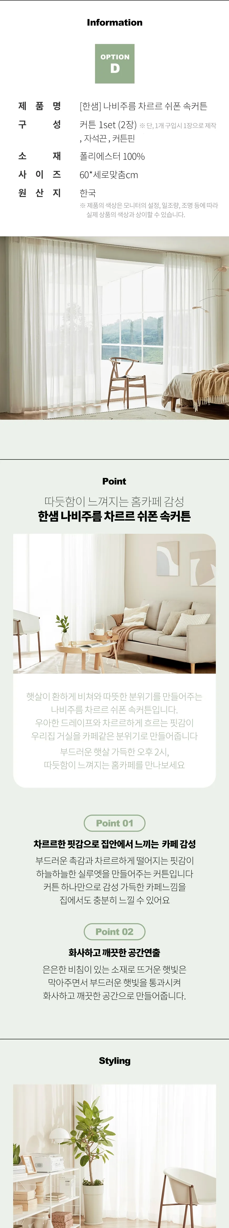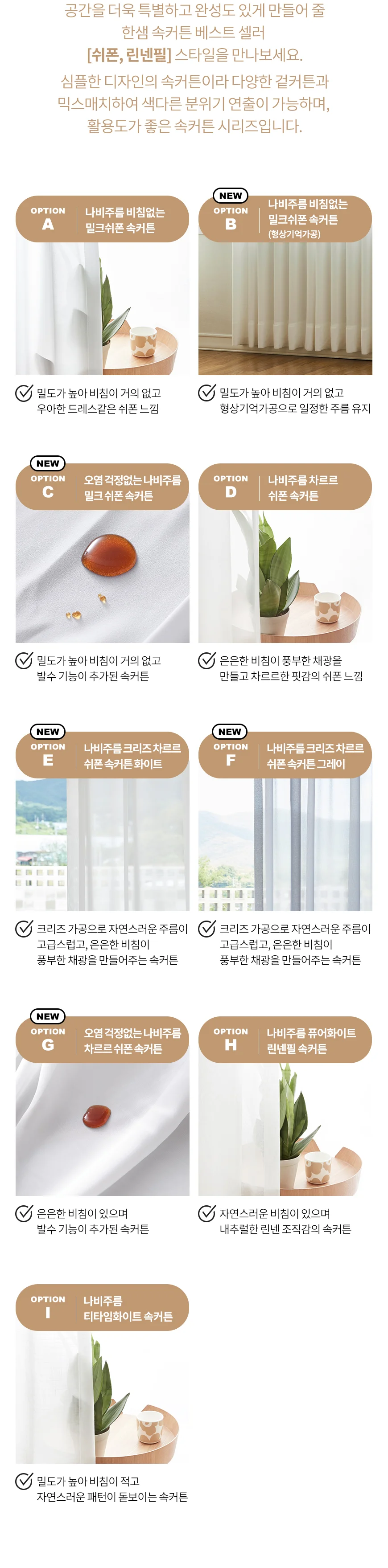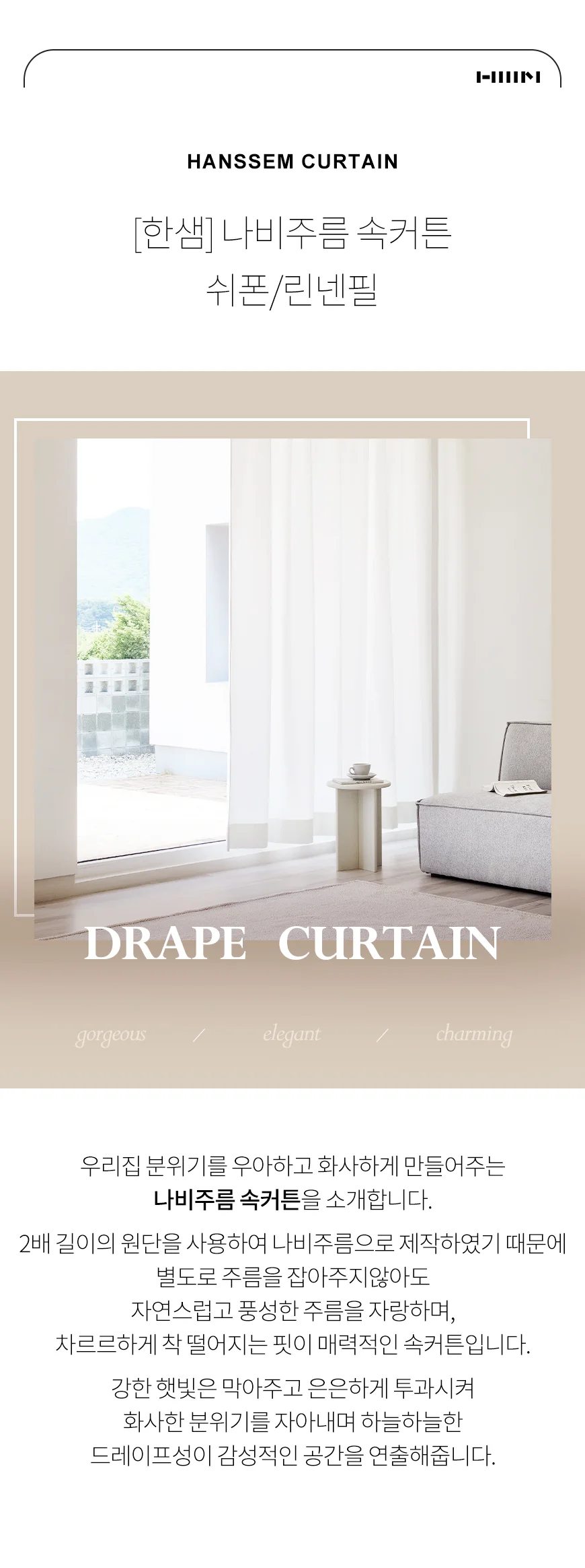 [특가~12/22]나비주름 속커튼 쉬폰/린넨/레이스 (화이트/그레이)