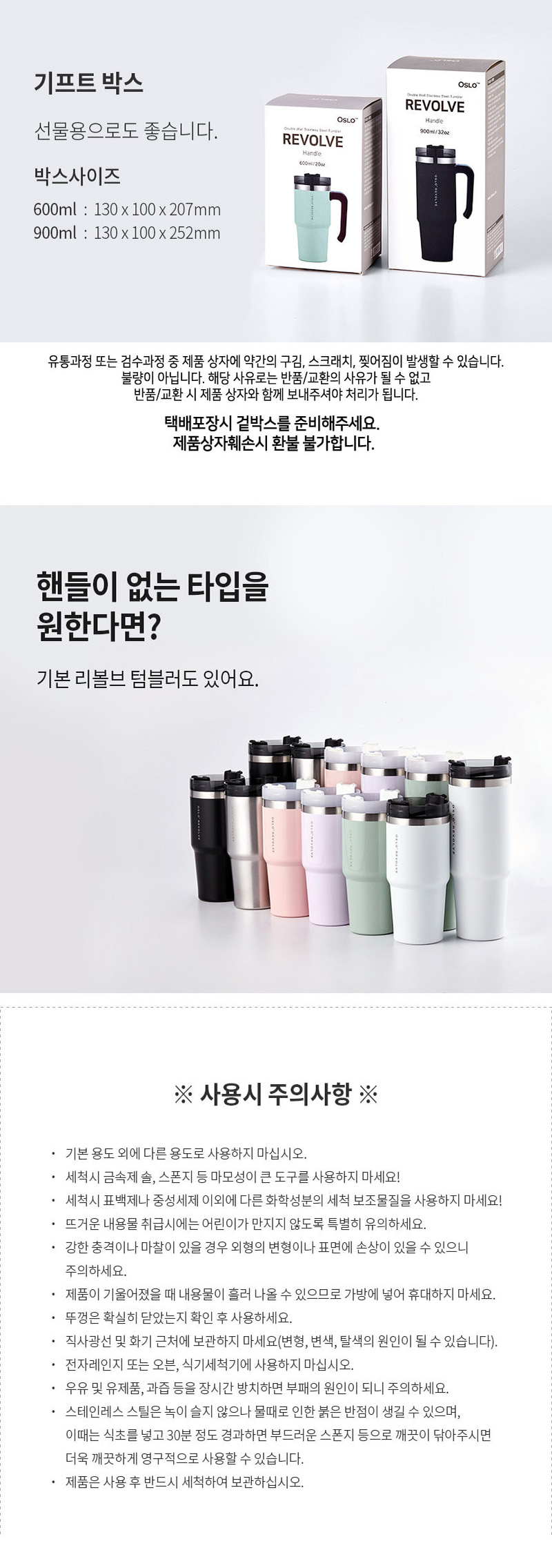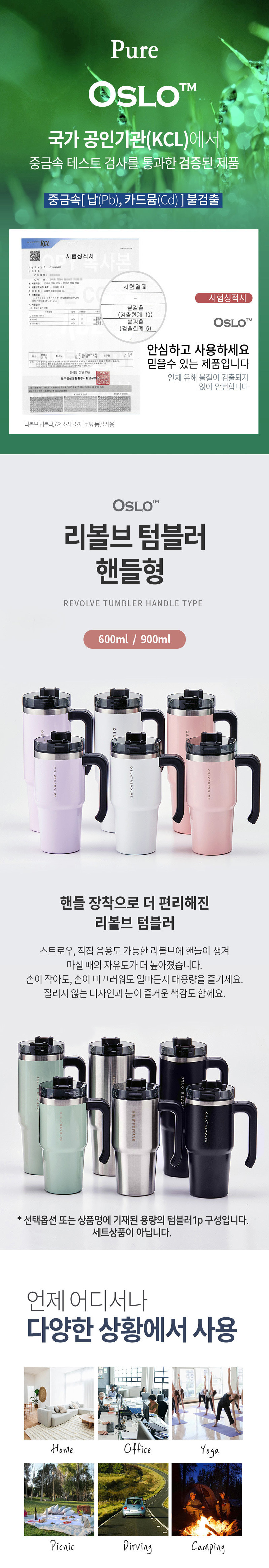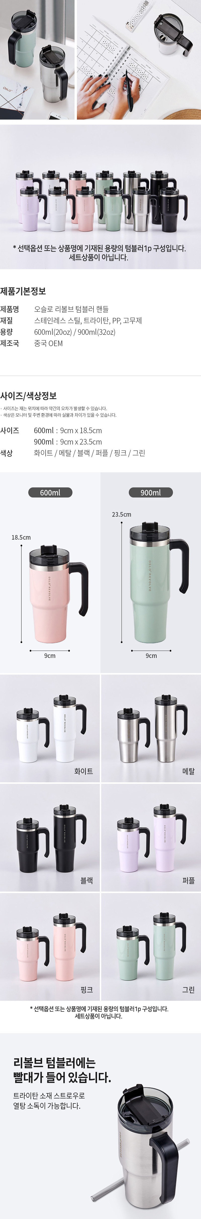 오슬로 리볼브 텀블러 핸들형 600ml 900ml (12type)