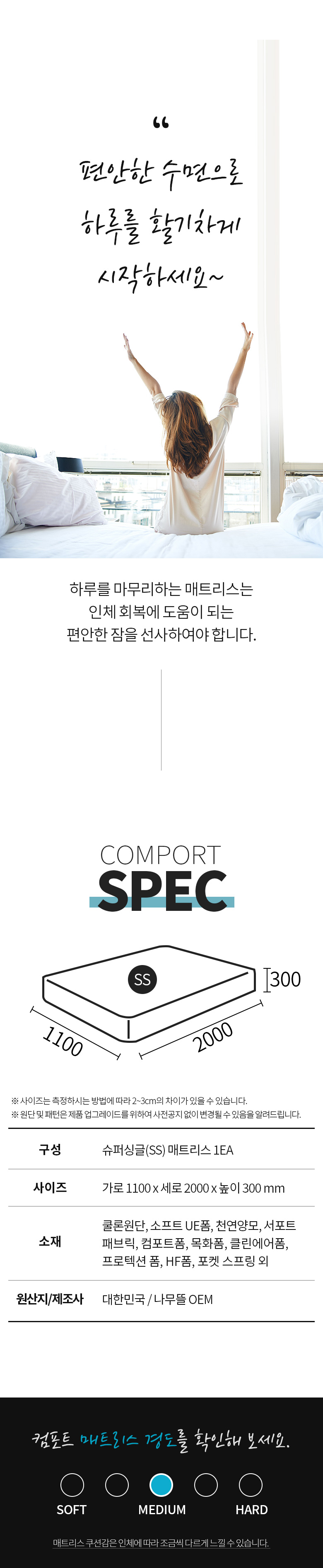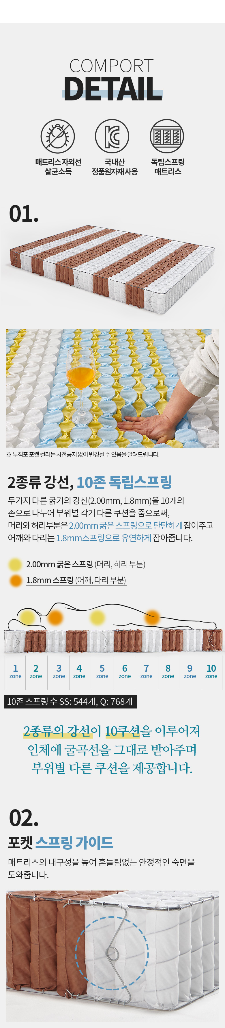 컴포트 10존 쿨론 코튼 폼 독립스프링 매트리스 SS SSB119C