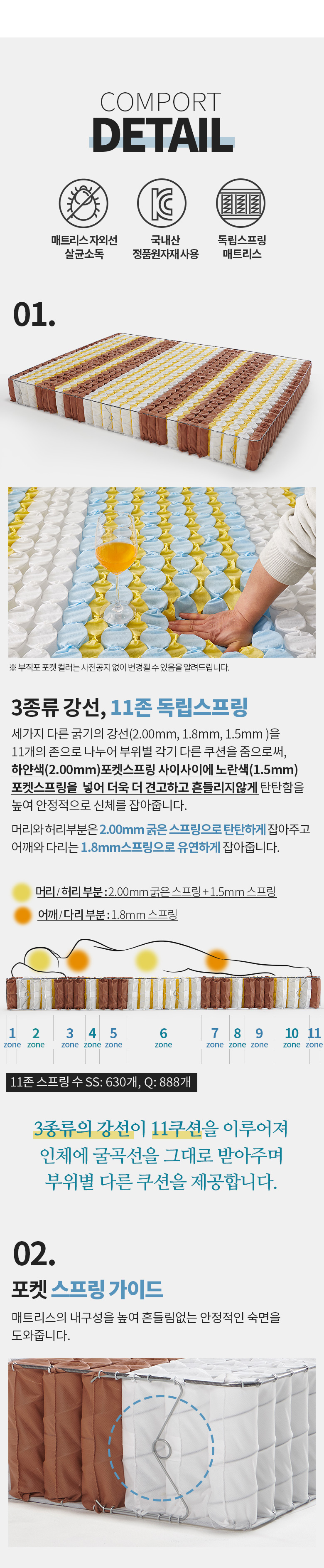 컴포트 11존 3라인 유로탑 라텍스 폼 독립스프링 매트리스 SS SSB139C