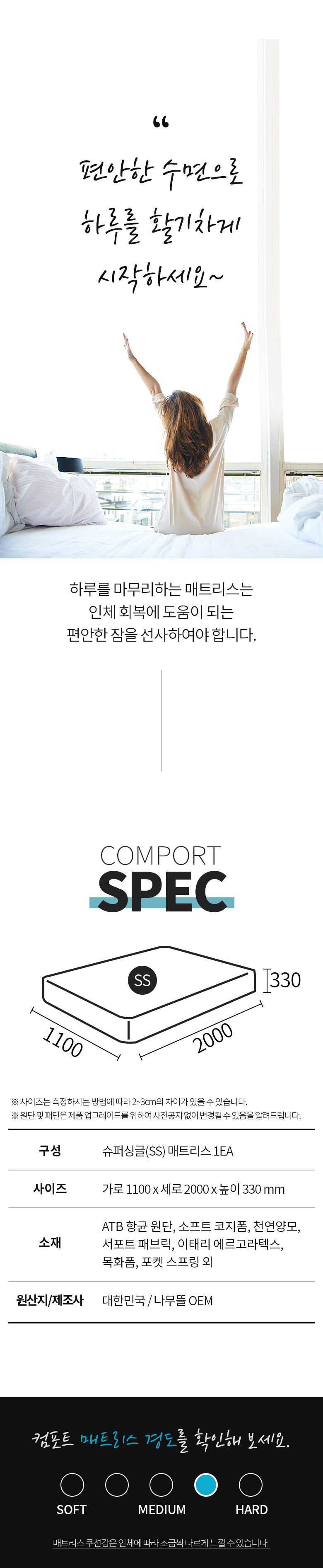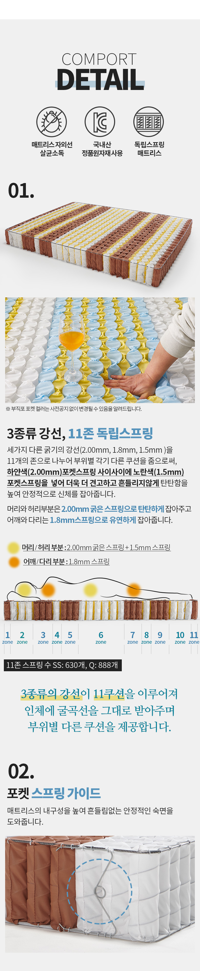 컴포트 11존 3라인 라텍스플러스 독립스프링 매트리스 SS SSB141C