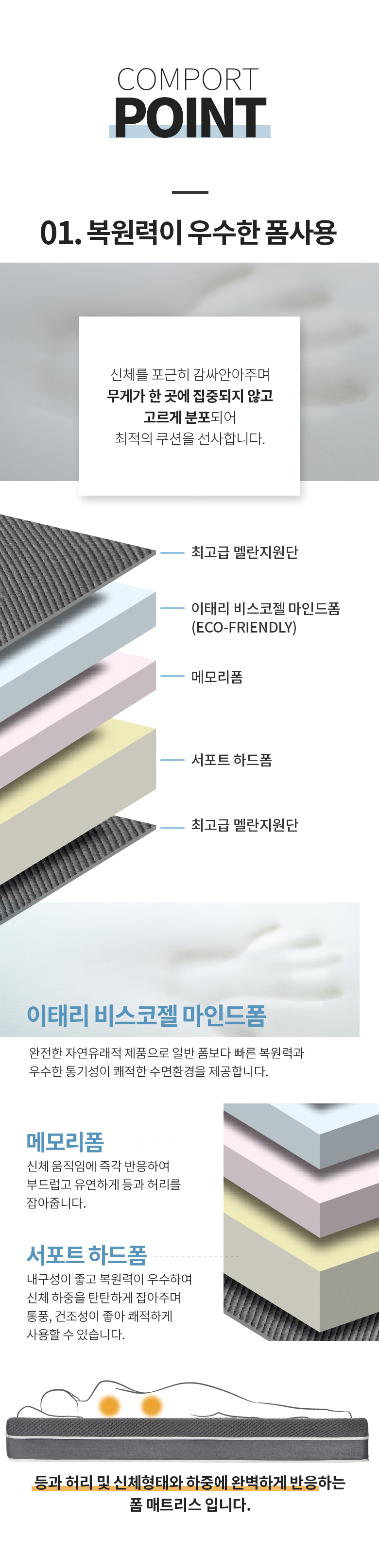 컴포트 비스코젤 메포리폼 매트리스 SS SSB147C