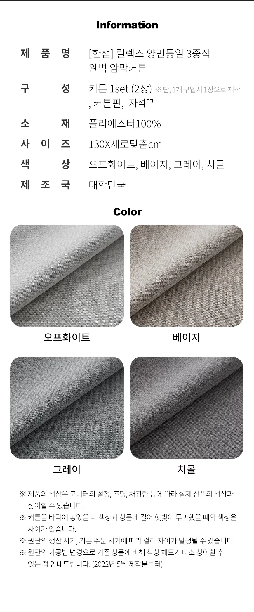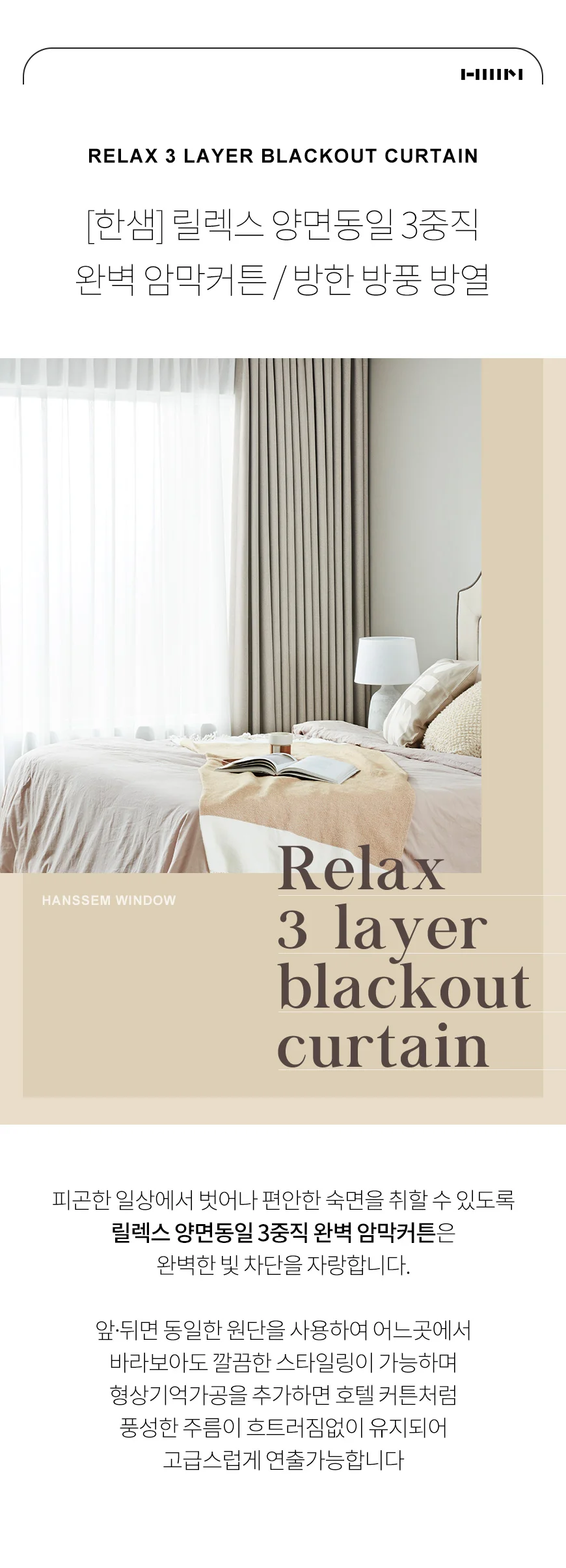 [특가~12/22]릴렉스 앞뒤동일원단 3겹 완벽암막커튼/형상기억가공(맞춤) DIY/방문설치