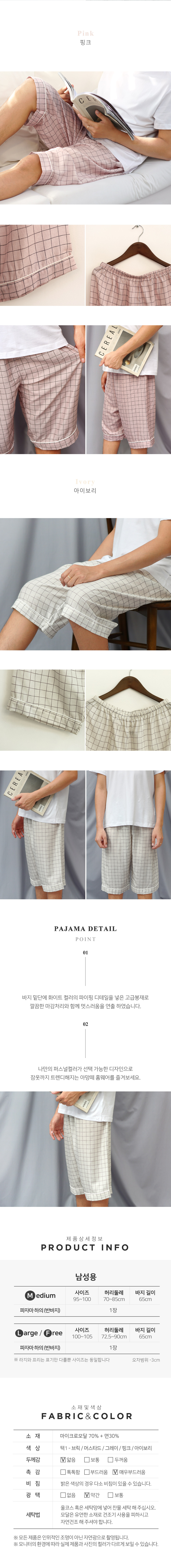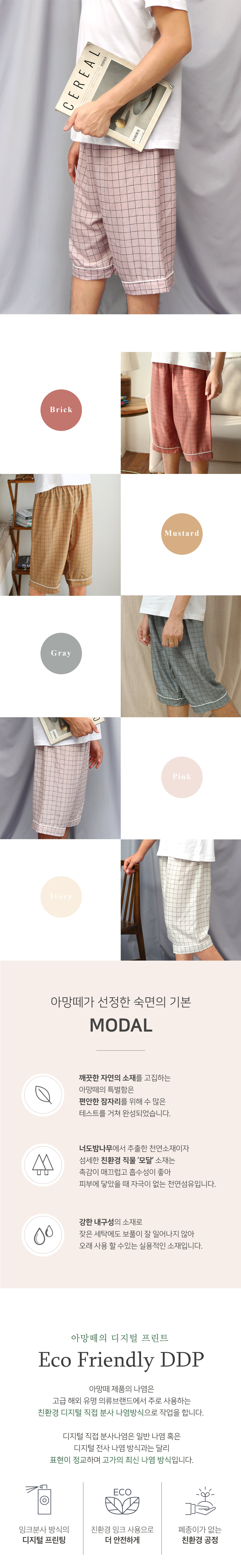 아망떼 그리드 남성 모달 파자마 5부(M/L) 5컬러
