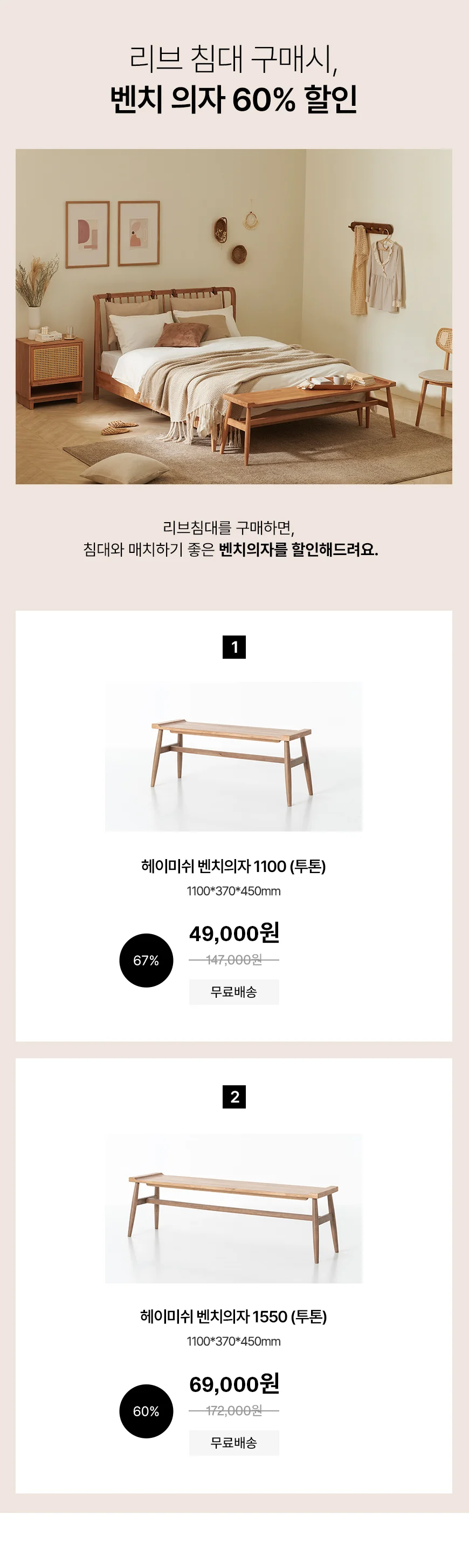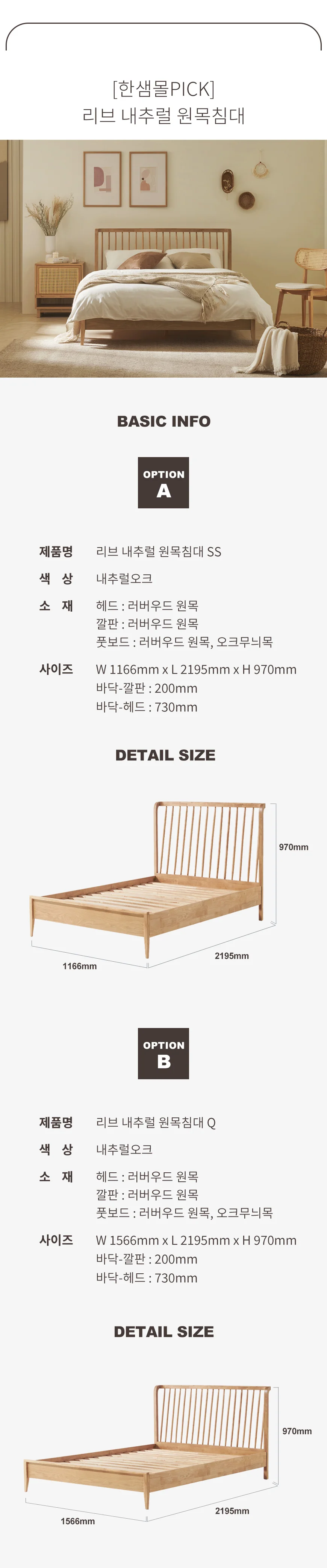 (한샘몰pick) 리브 내추럴 원목침대(SS/Q)