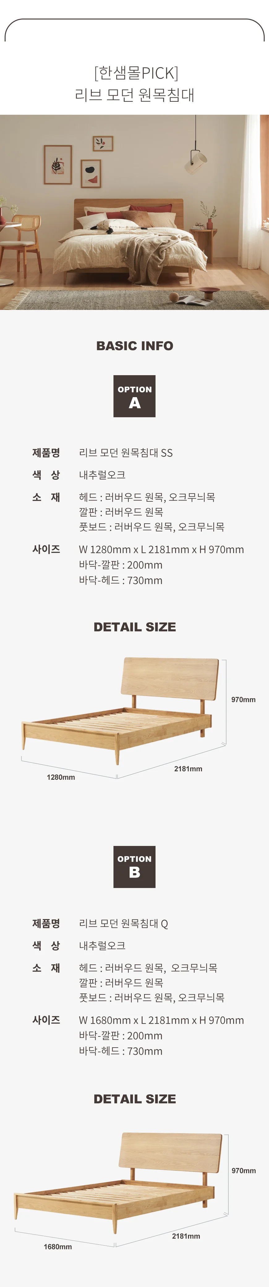 [특가 ~12/29](한샘몰pick) 리브 모던 원목침대 (SS/Q)
