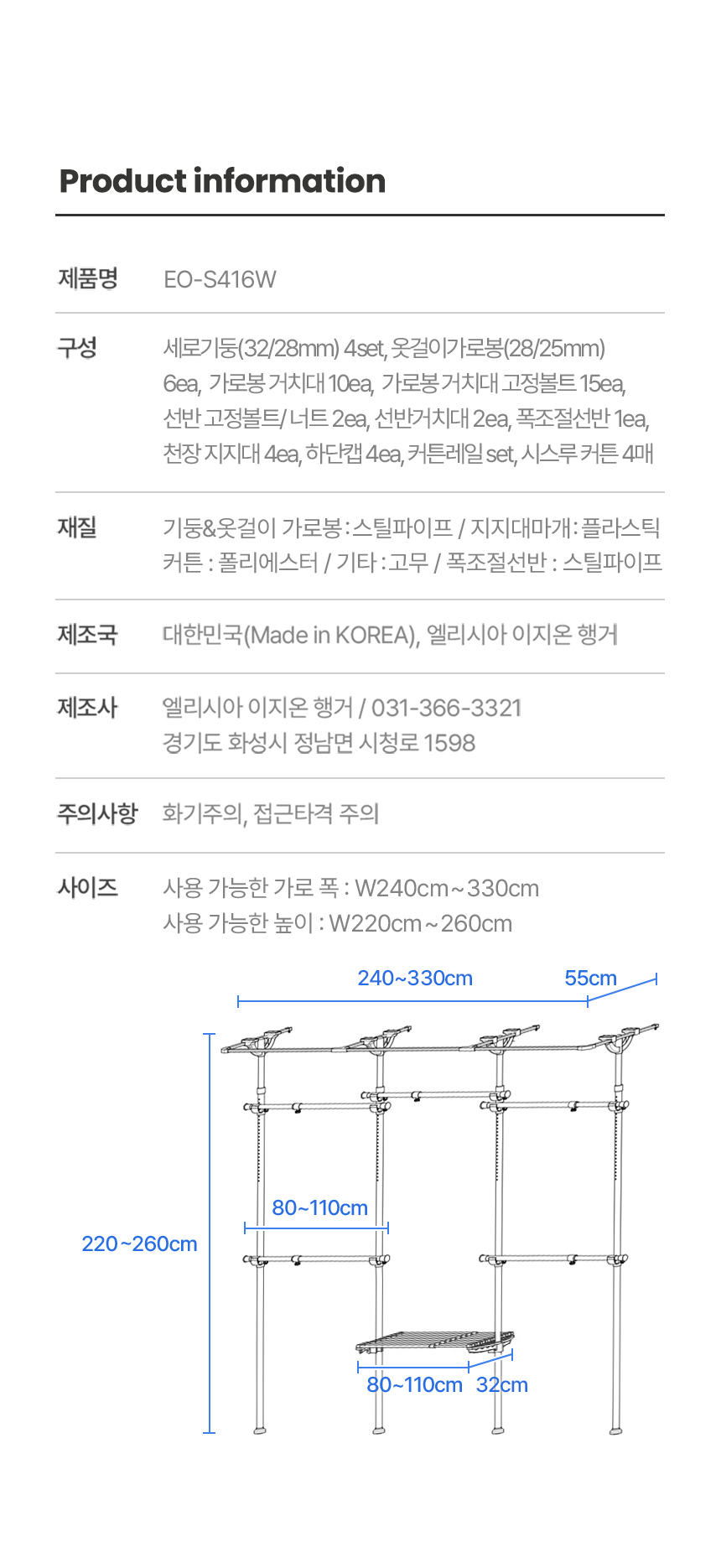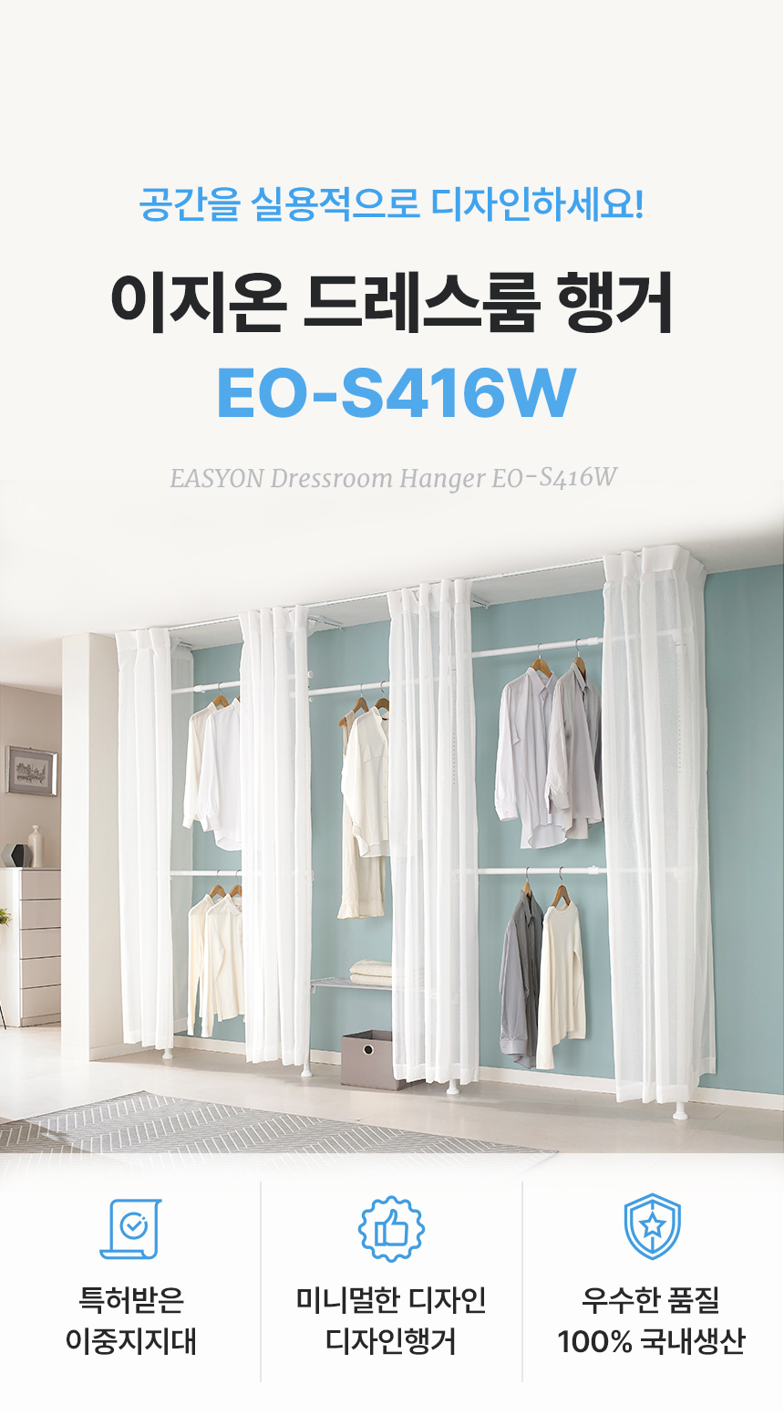 이지온 국민튼튼 커튼 행거 EO-S416W 폭조절선반 행거