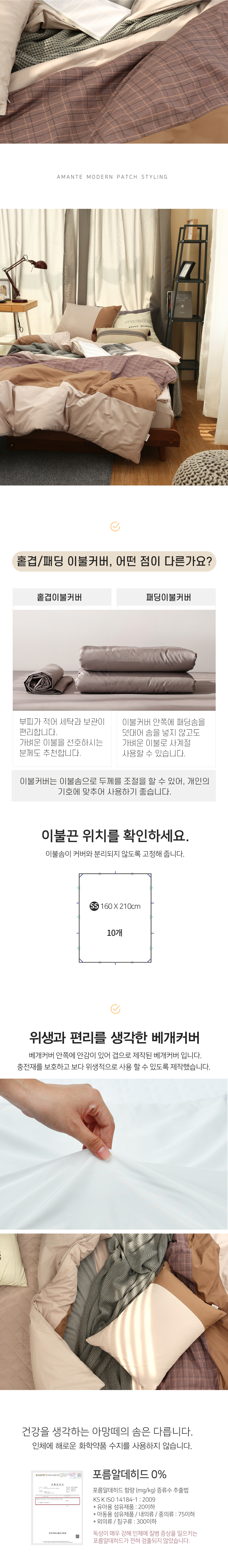 아망떼 모던패치 누빔이불커버 베개세트 모카브라운SS