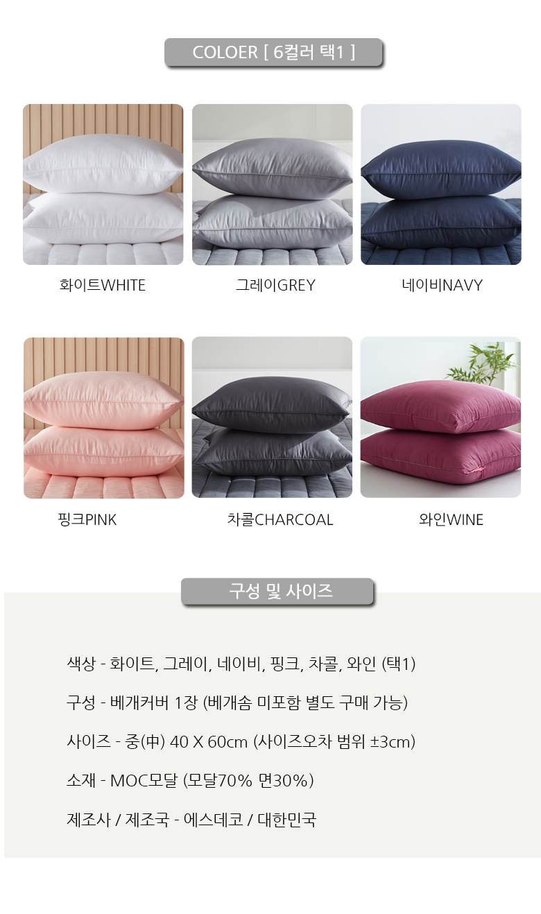 MOC 모달 보들보들한 베개커버4X6 솜샤시내장 핑크