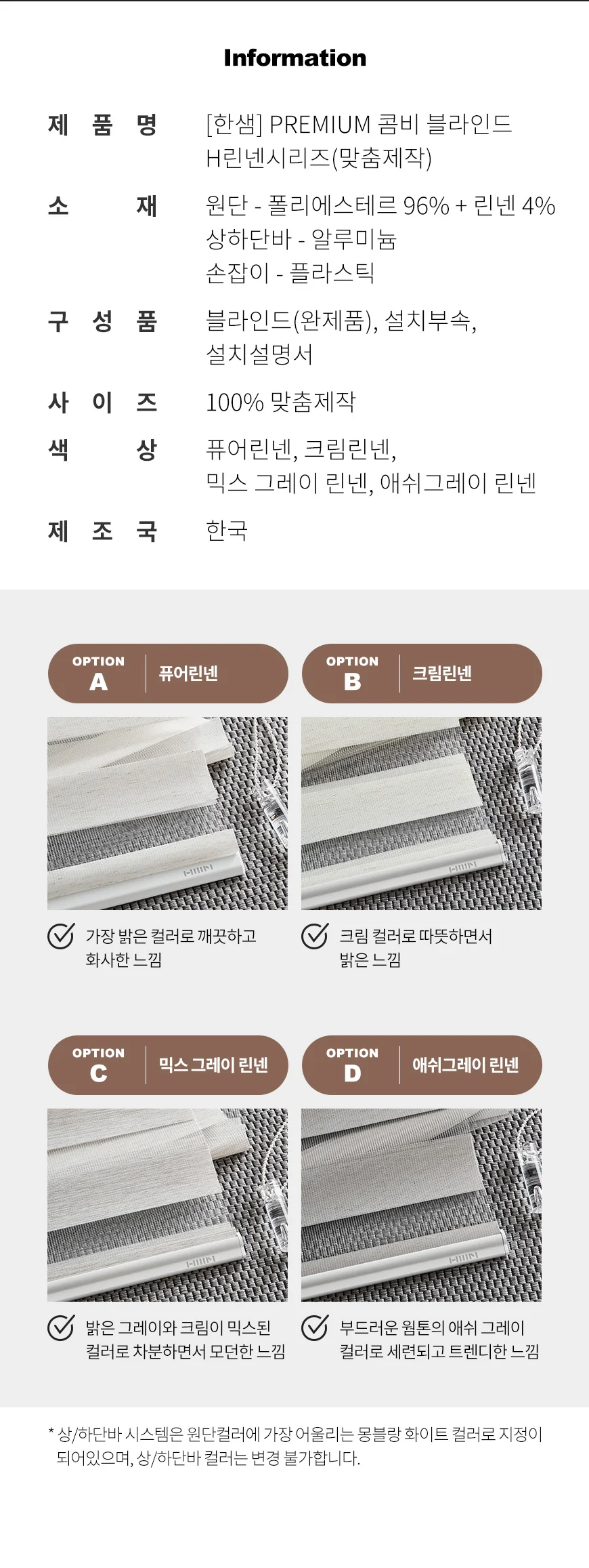 PREMIUM 린넨 콤비 블라인드(맞춤제작)