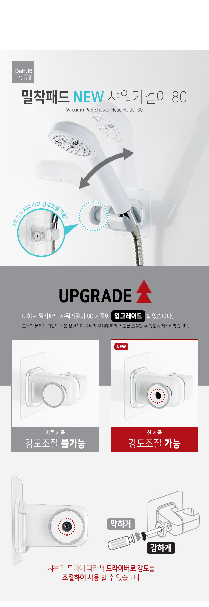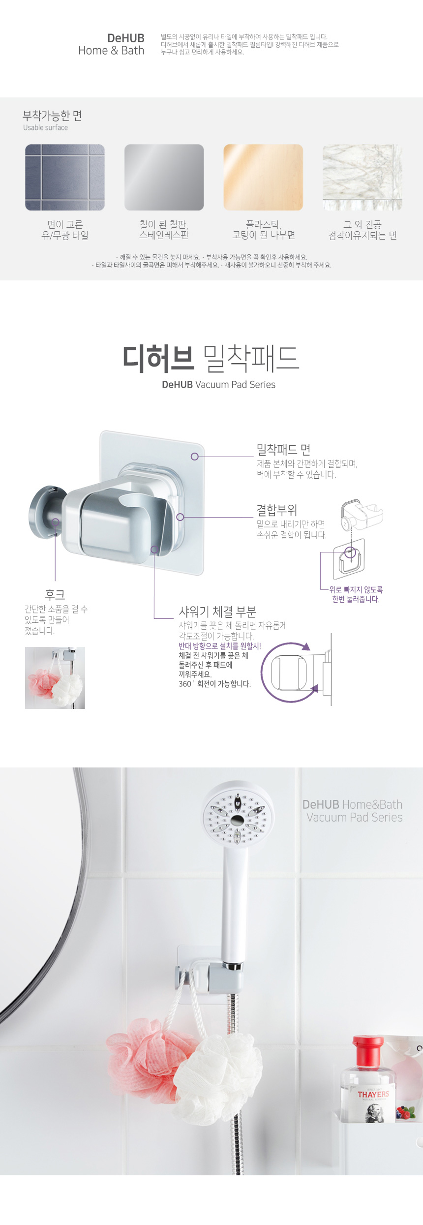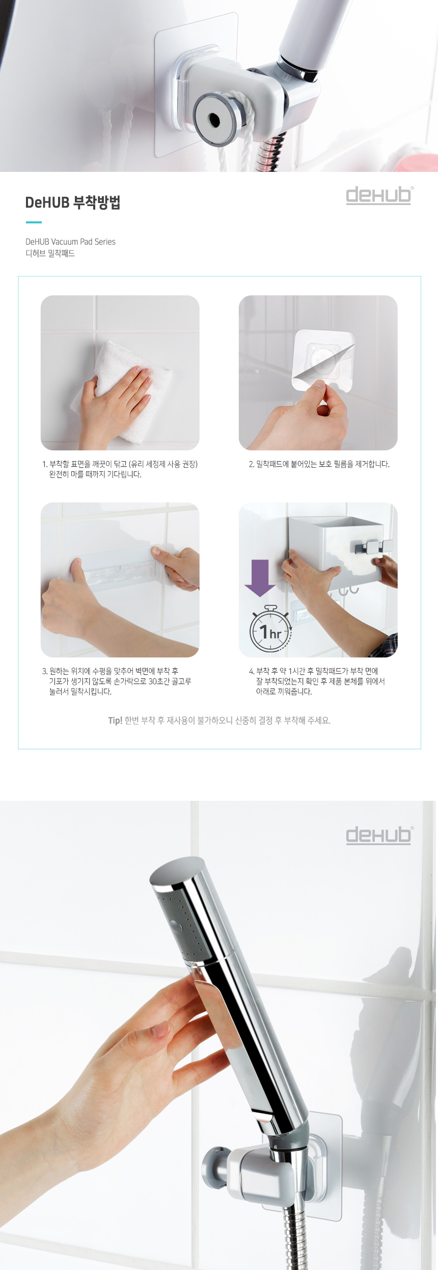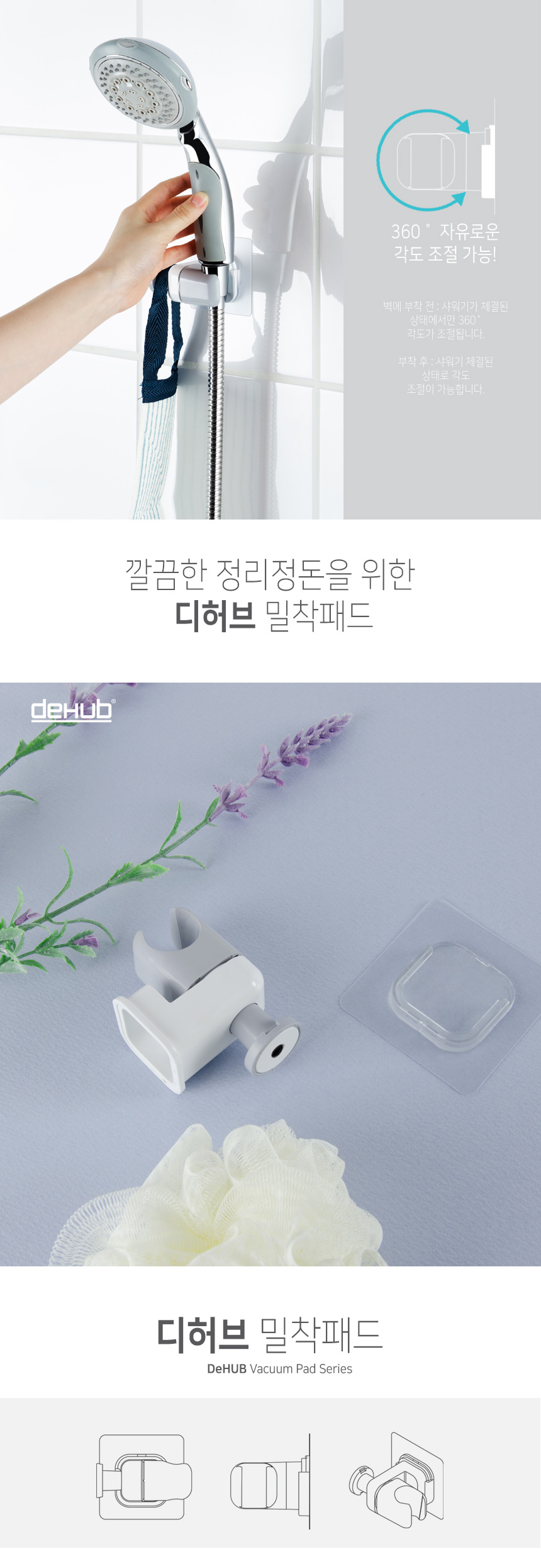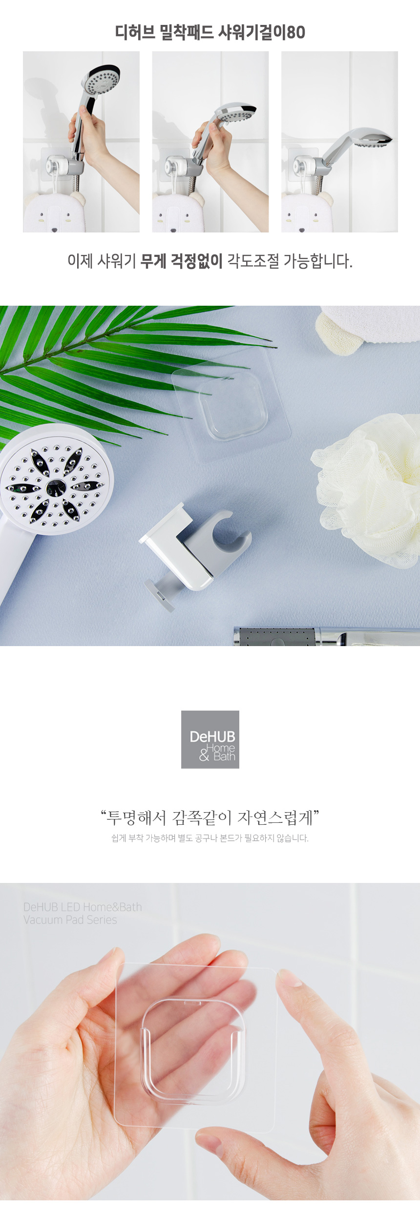 디허브 밀착패드 샤워기걸이 80 접착식 부착식