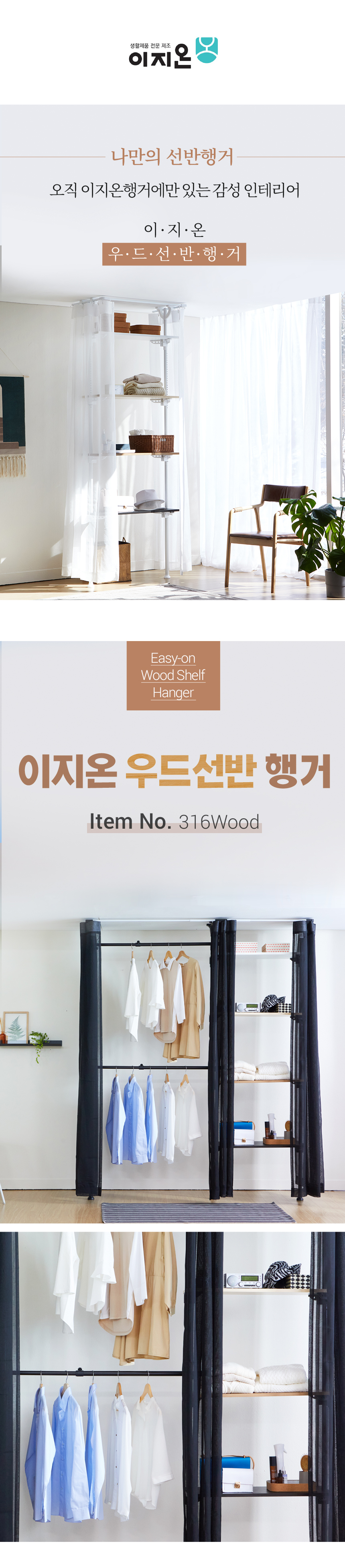 이지온 국민튼튼 우드 선반 행거 EOB-S316WOOD