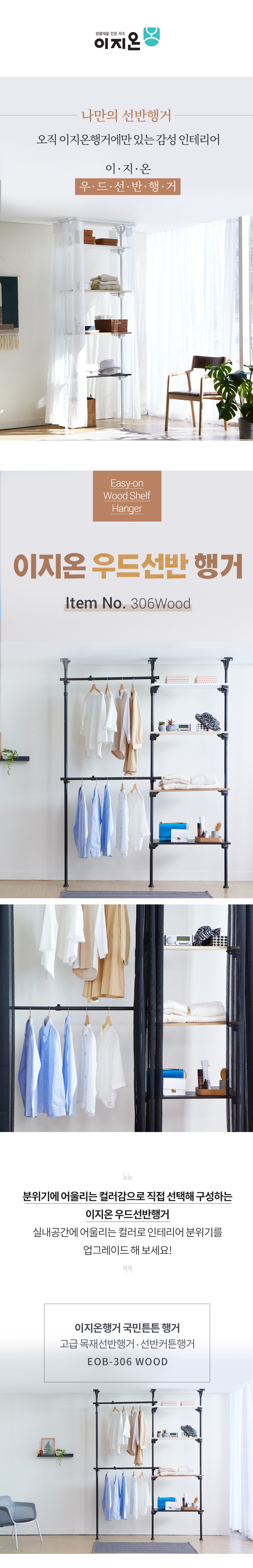 이지온 국민튼튼 우드 선반 행거 EOB-306WOOD