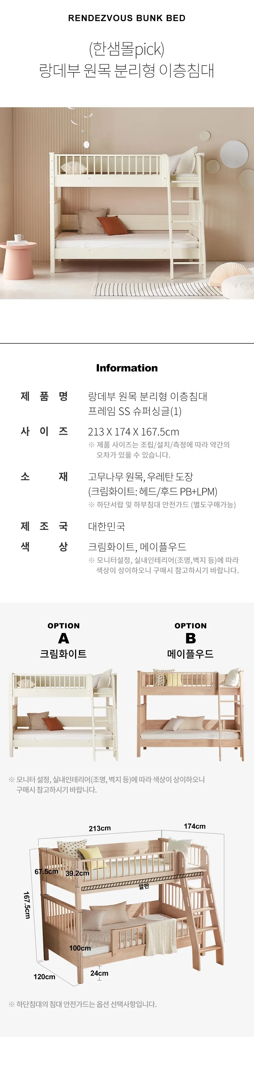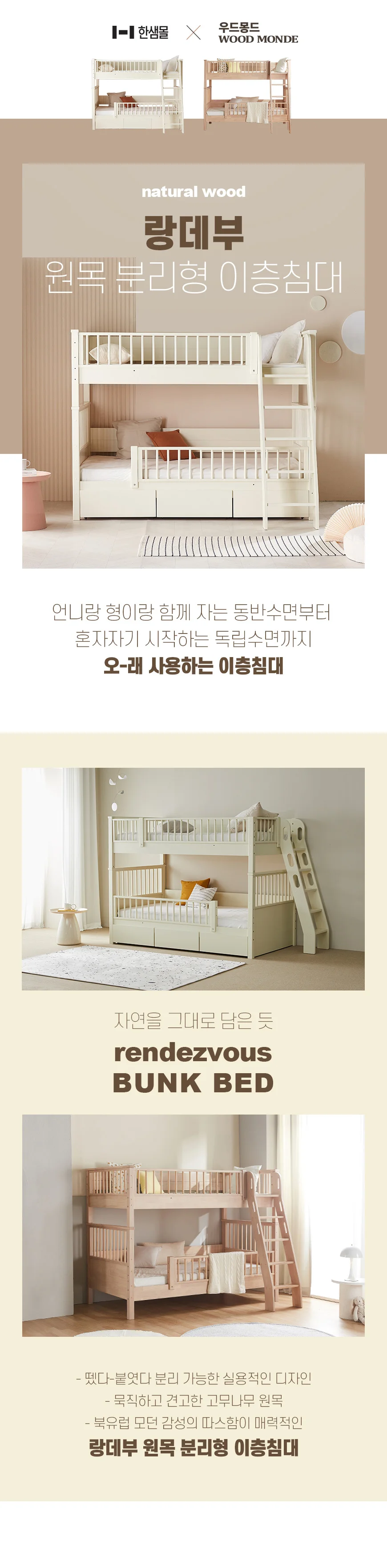 [특가 ~12/22](한샘몰pick) 랑데부 원목 분리형 이층침대