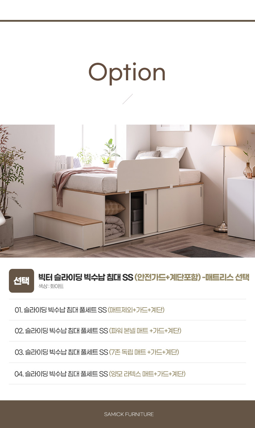 삼익가구 빅터 슬라이딩 빅수납 슈퍼싱글 침대프레임(안전가드+계단포함)