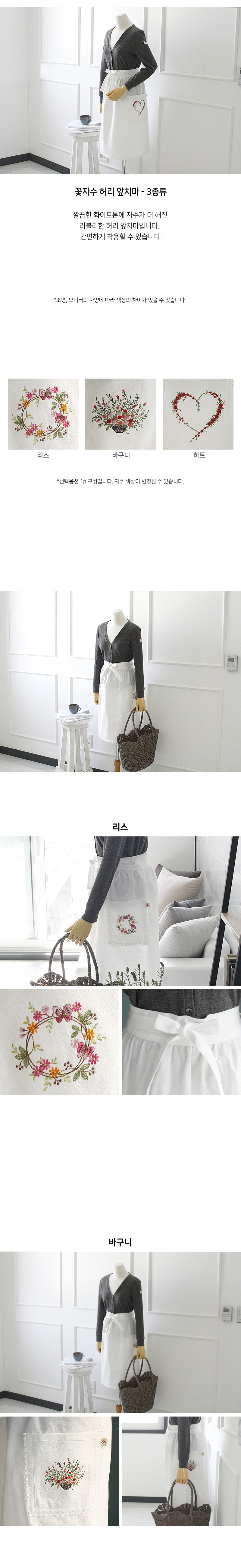 꽃자수 허리 앞치마 3type