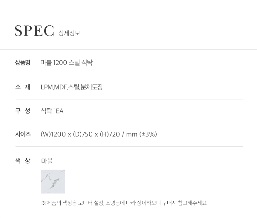 마블 4인용 식탁 테이블 1200
