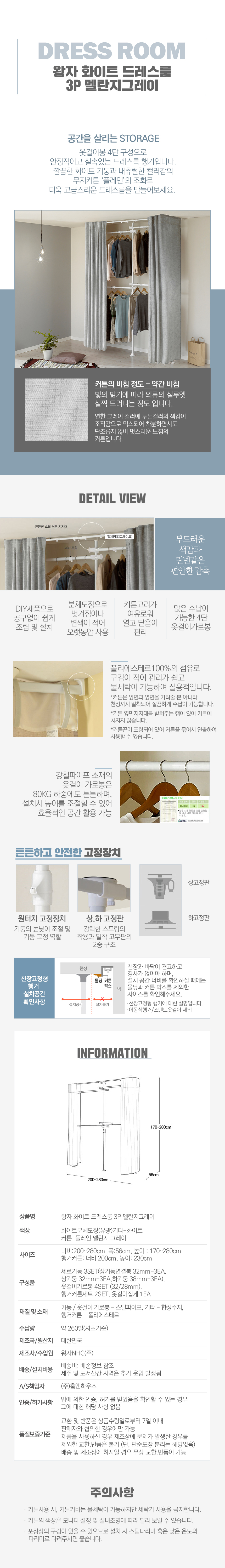 [왕자행거] 화이트 드레스룸 3P 멜란지그레이