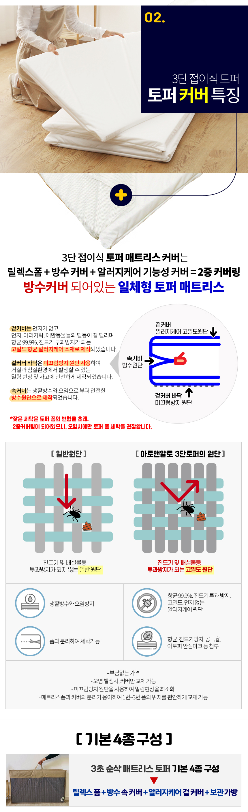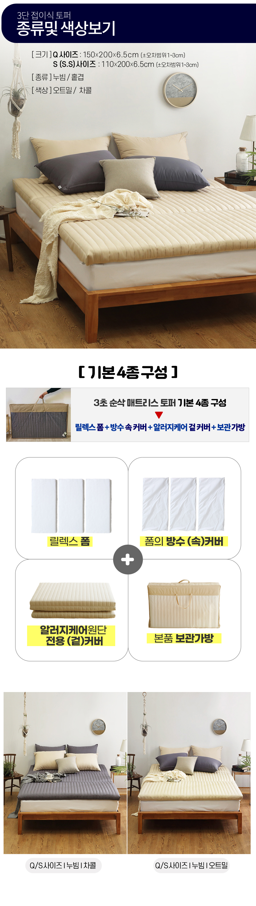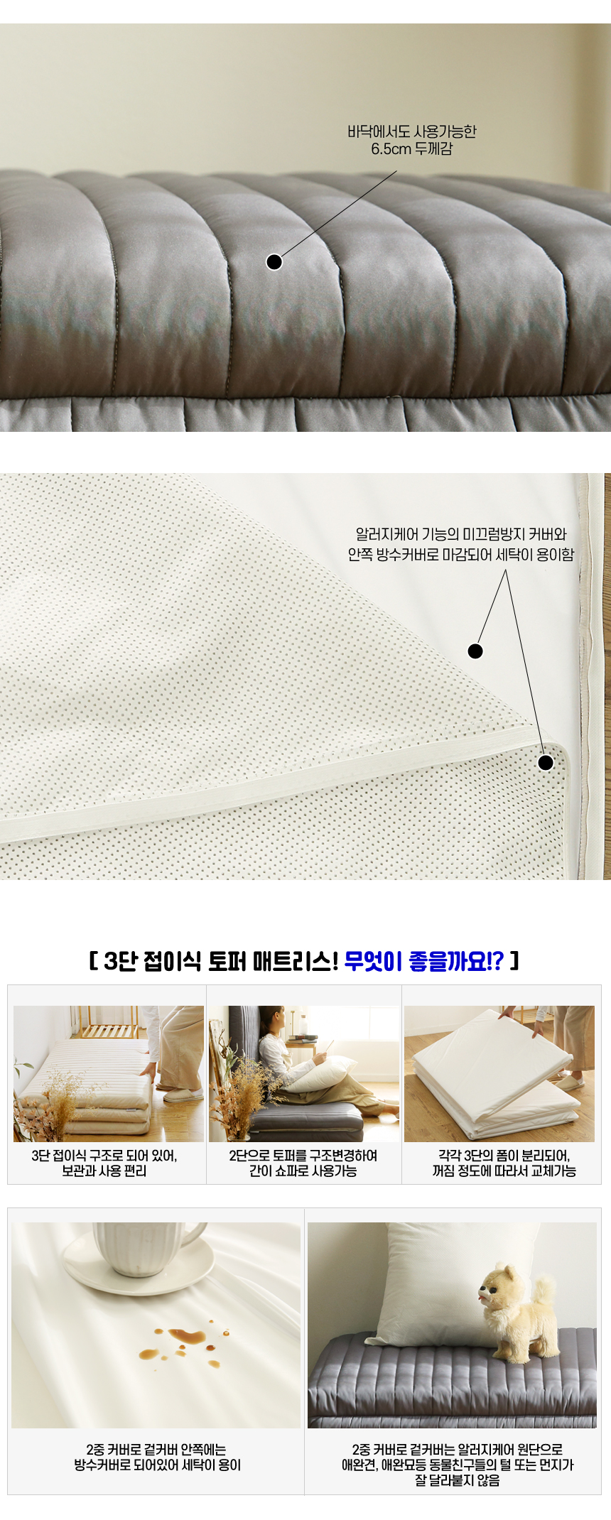 아토앤알로 3초순삭 알러지케어 방수 접이식 누빔 토퍼 SS/Q