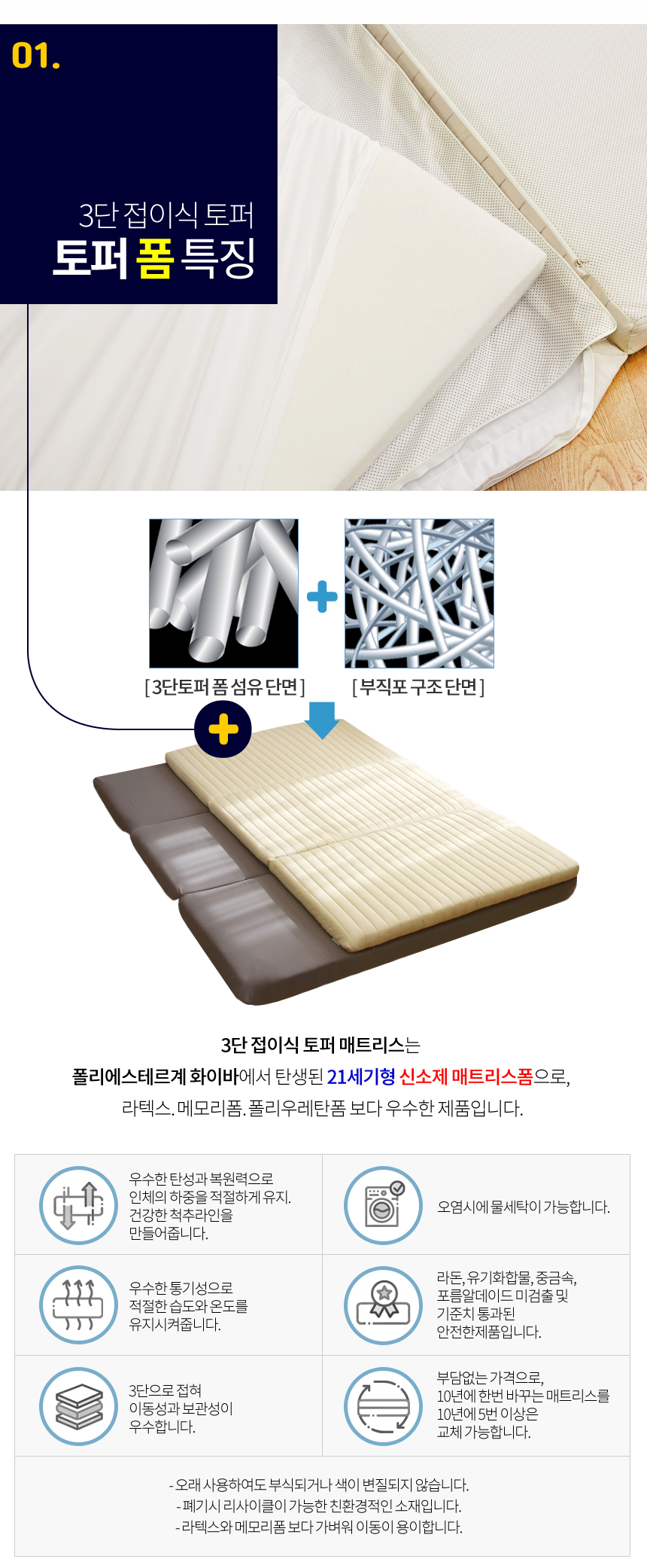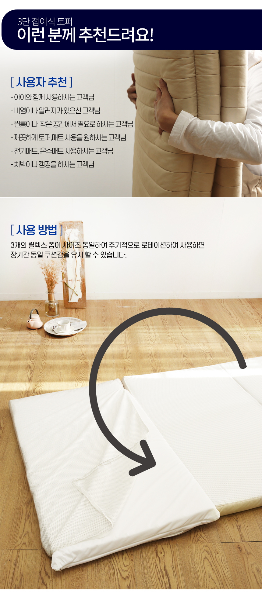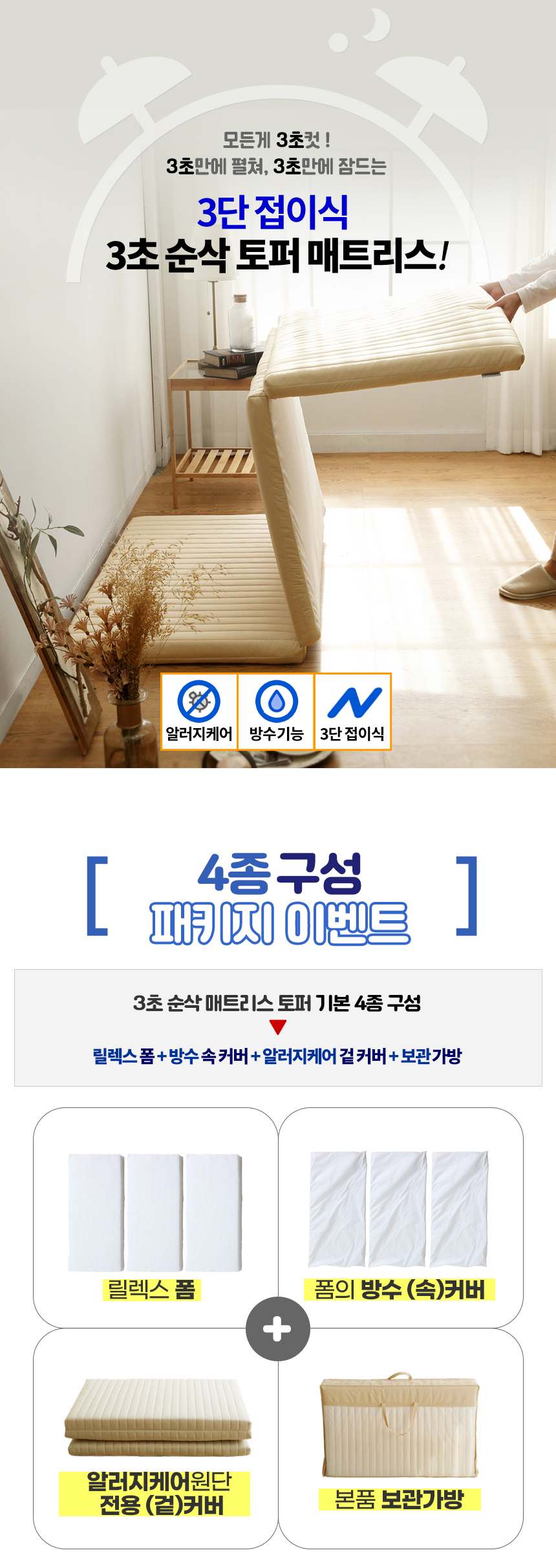 아토앤알로 3초순삭 알러지케어 방수 접이식 누빔 토퍼 SS/Q