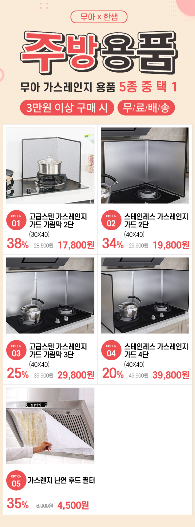 인블룸 스텐 가스레인지 기름방지 가드 후드 필터 커버 모음